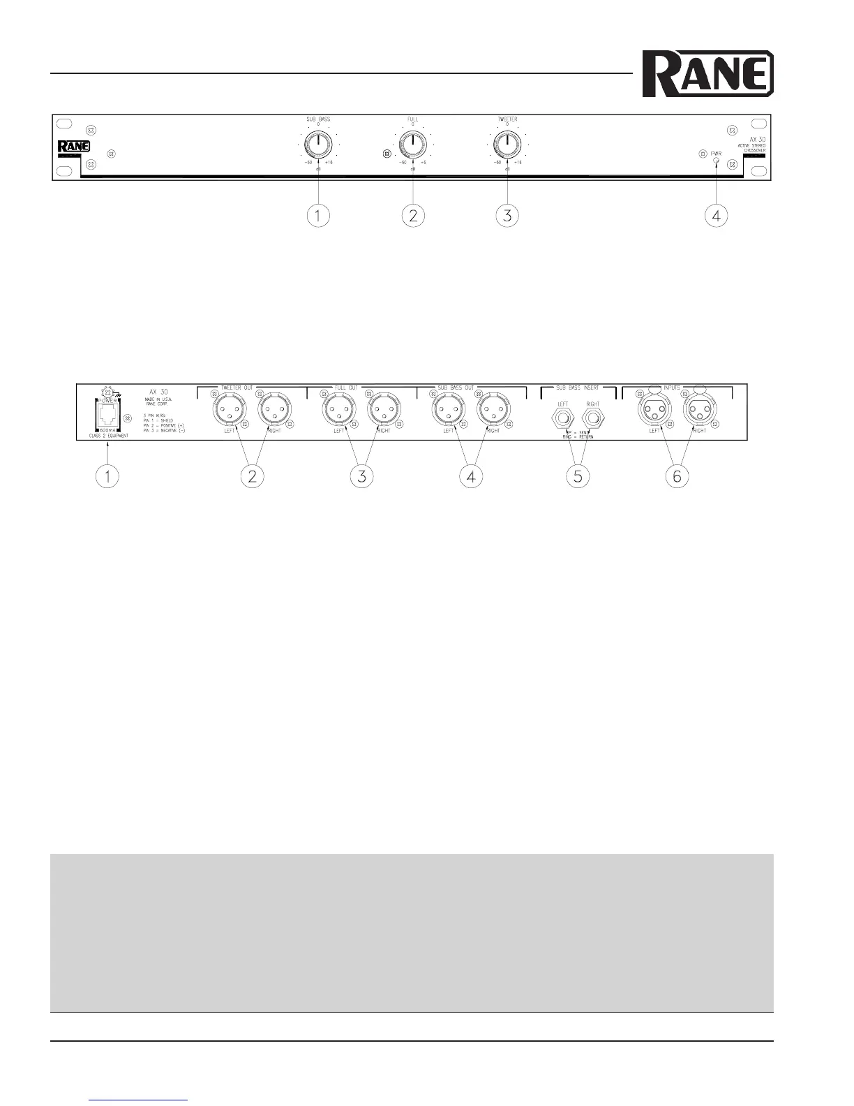 햲 Remote power supply input: This unit is supplied with a Rane RS 1 Remote AC Power Supply suitable for connection to