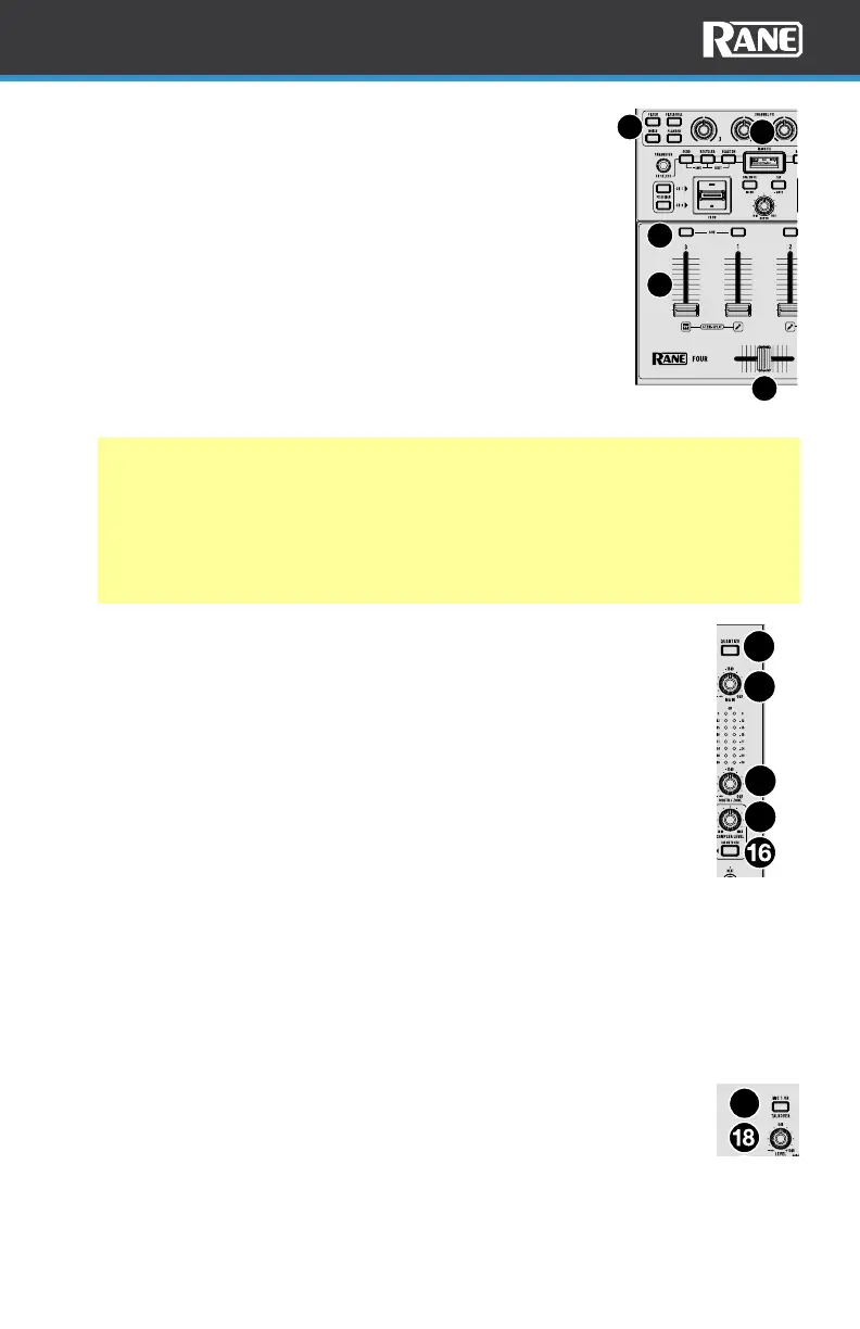 11. Channel/Deck Fader: Move this fader to adjust the volume level of