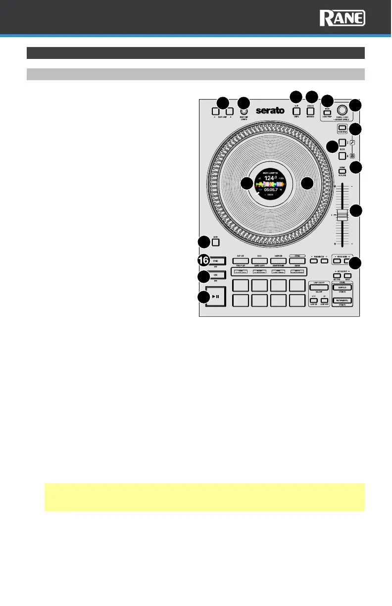 6. Range / Keylock: Press this button to adjust the range of the Pitch Fader to