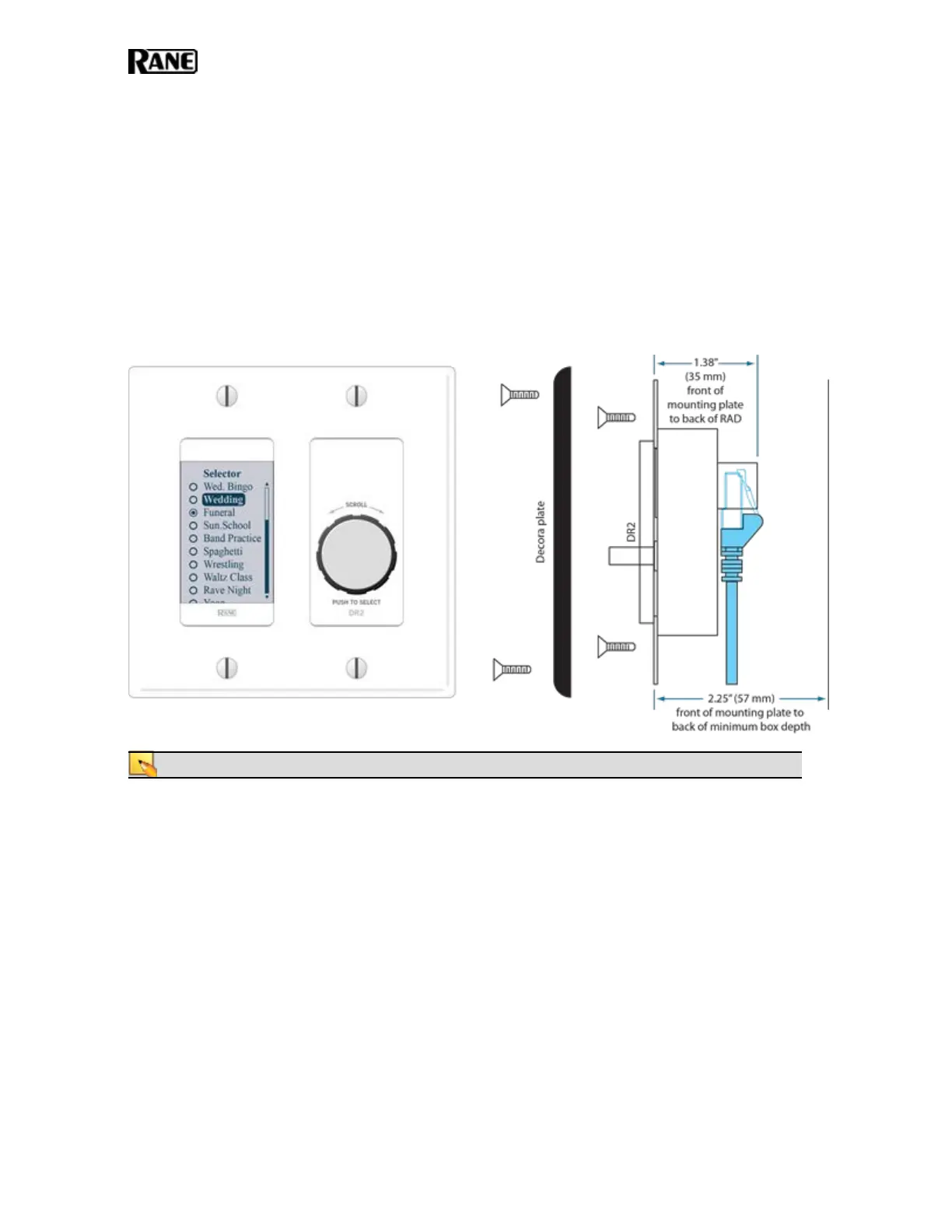 NOTE: A DR2 requires a two-gang standard switchbox for installation into a wall.