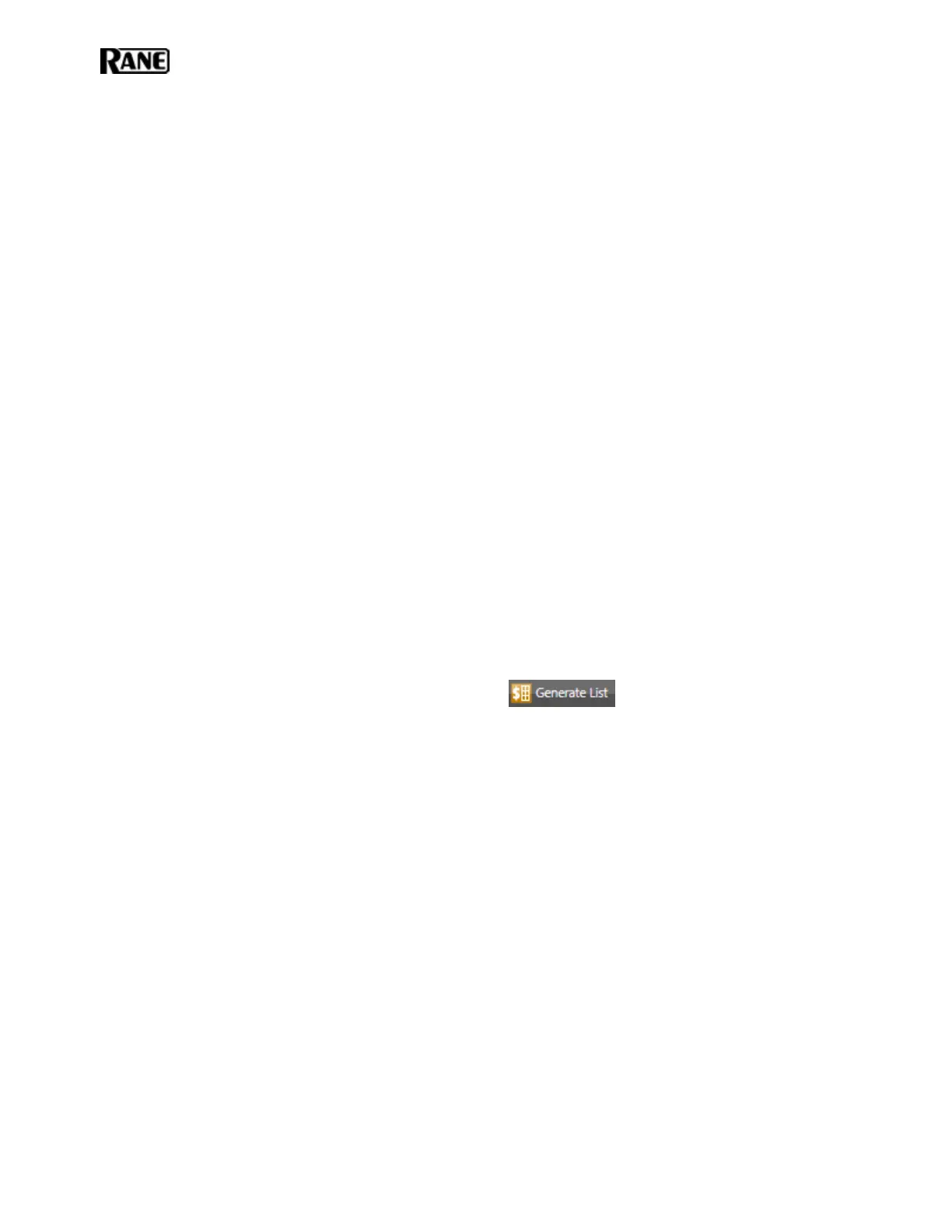 The Generate List button creates an Excel file containing the models and quantities of all Rane devices in the Hal-