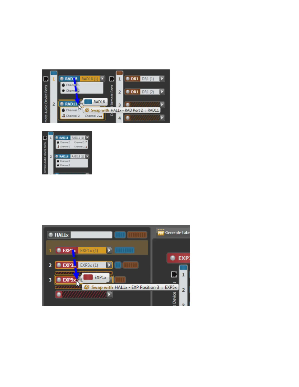 2. Drag the RAD or DR to the swap location and drop it there: