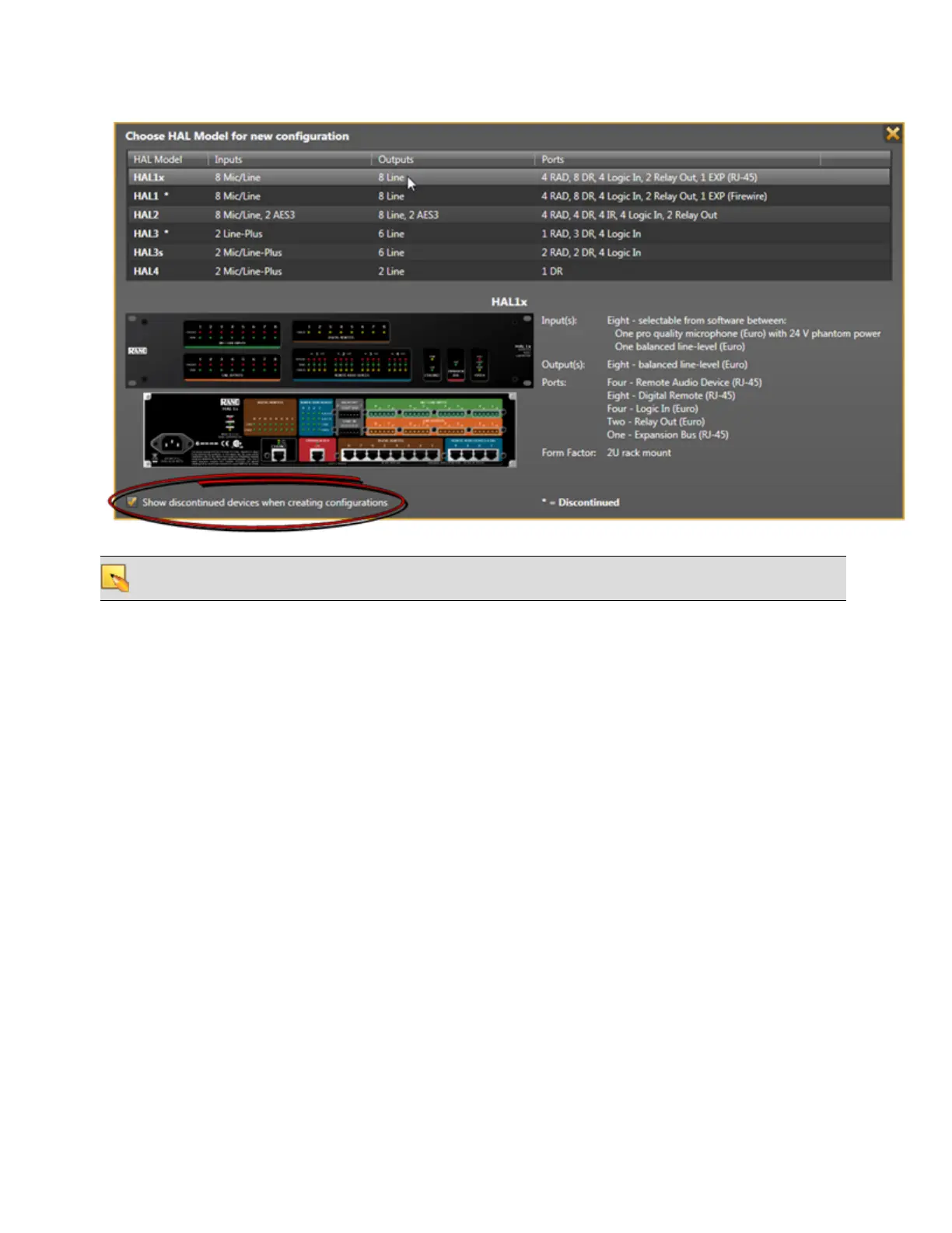 NOTE: In Halogen version 5.0.1 and later, you cannot create a new configuration for the unsupported HAL1
