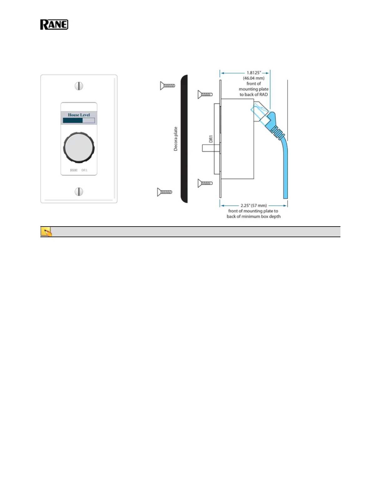 NOTE: A DR1 requires a one-gang standard switchbox for installation into a wall.