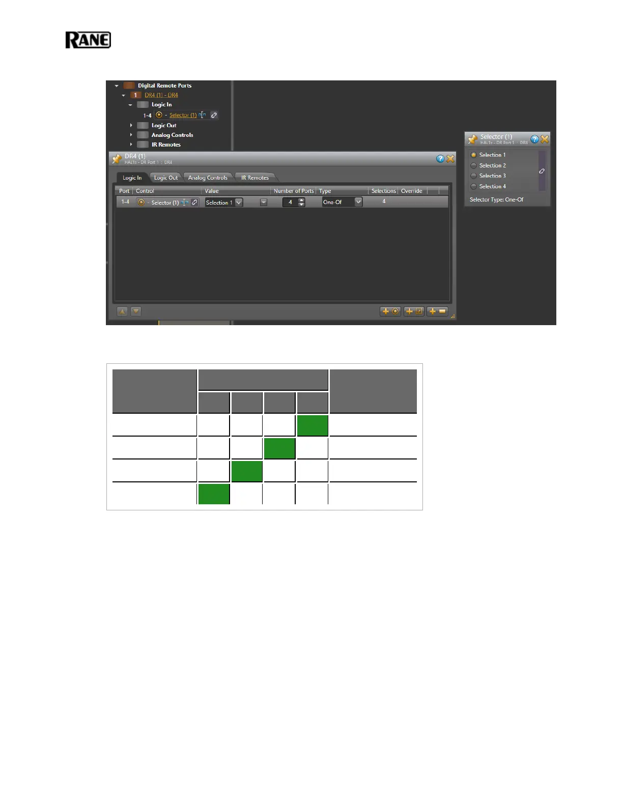 A set of DR4 Logic In ports configured as a one-of selector is not a read-only control because the ports