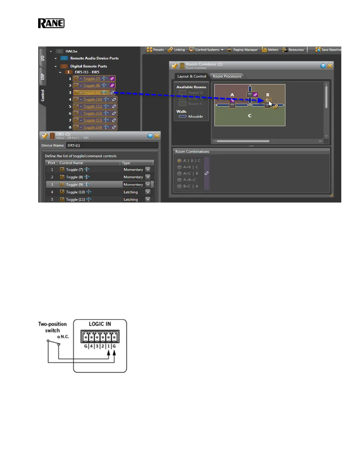 ting a physical switch connected to the Logic In port to one position sets the corresponding Toggle control in the