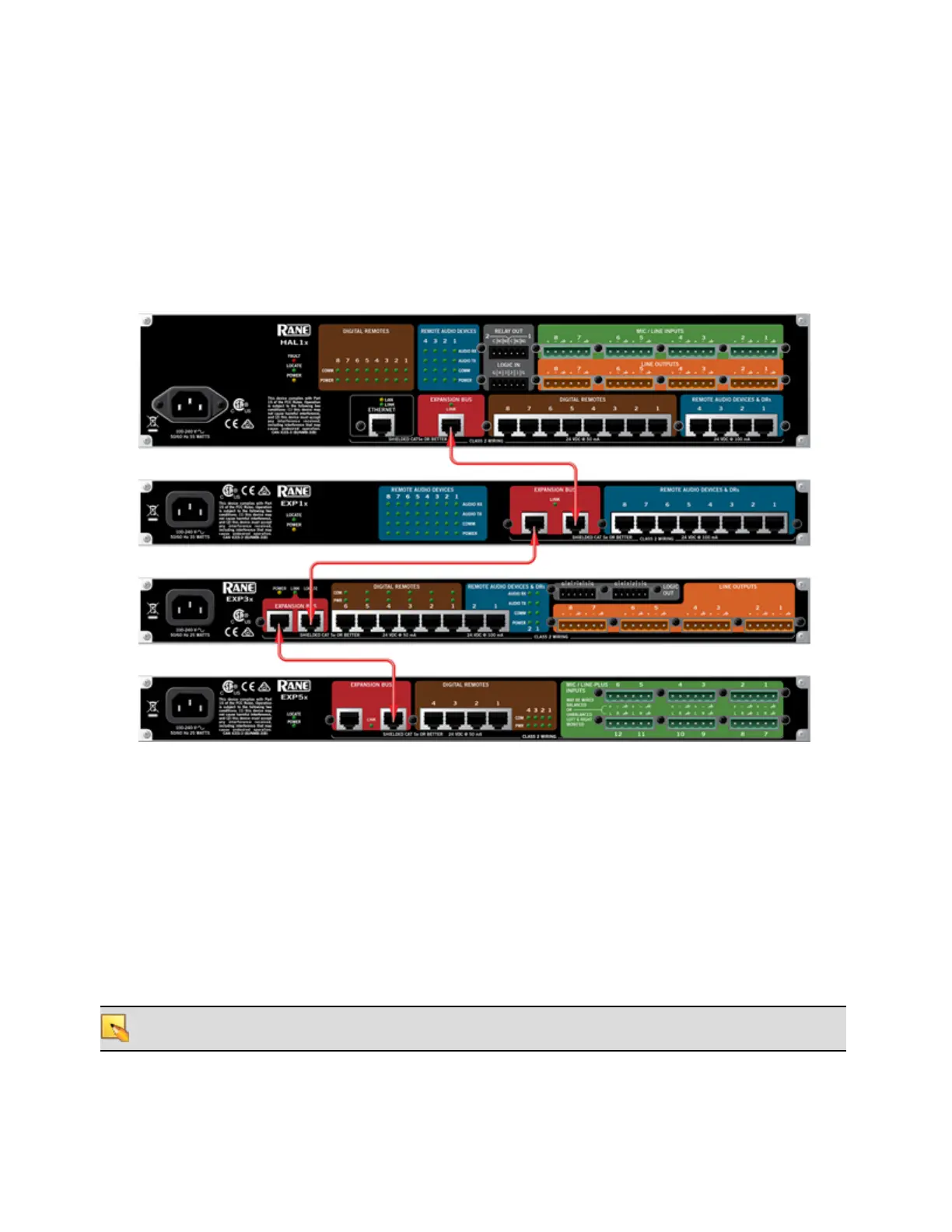 When the shielded CAT 5e cable is in place and the HAL and EXPs (if needed) are installed, connected, and con-