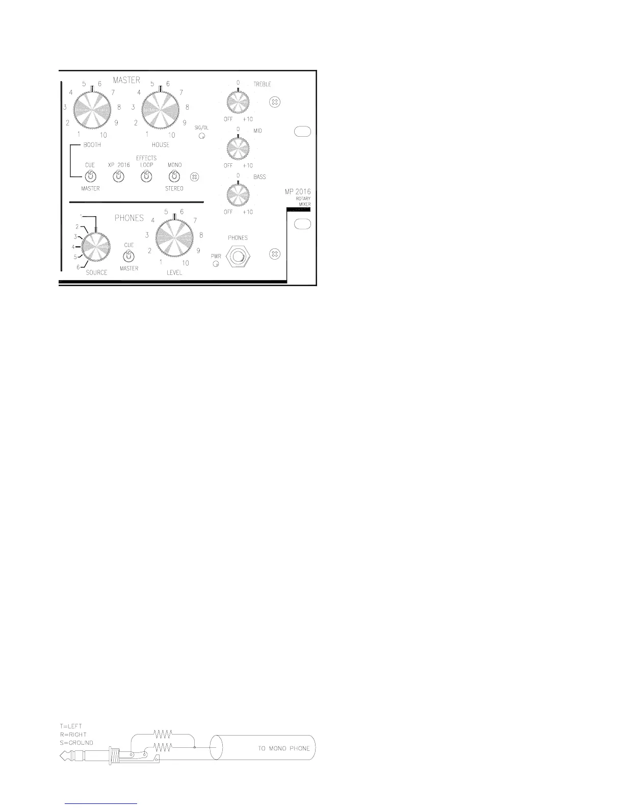 MIX LEVEL Outputs to the XP 2016 and returns a stereo