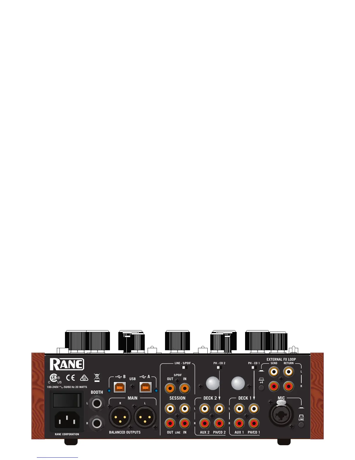 • External FX Loop Return stereo input is on a pair of unbalanced RCA jacks. The FX Return input is normally used in