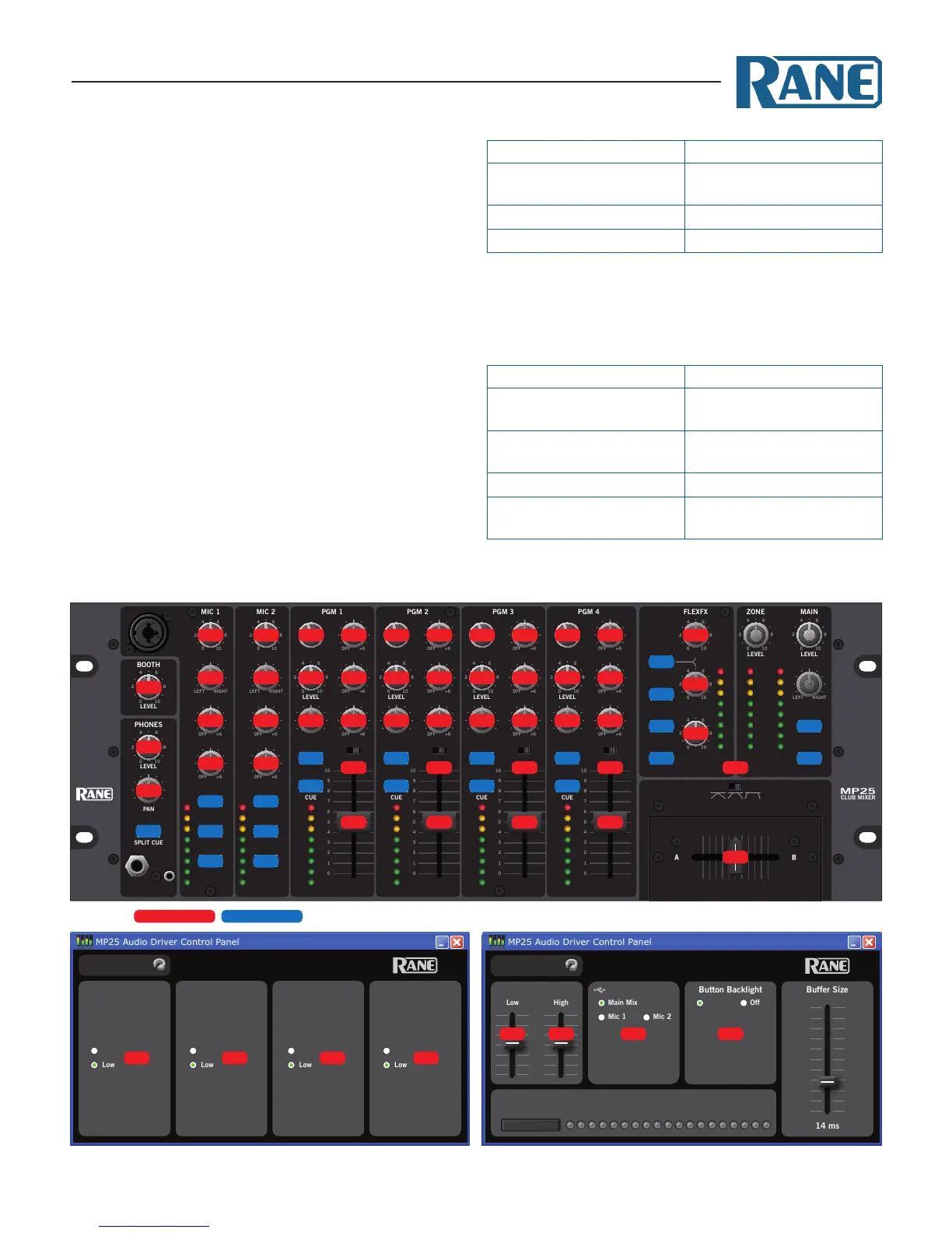 e mixer parameters controlled via the MP25 driver control