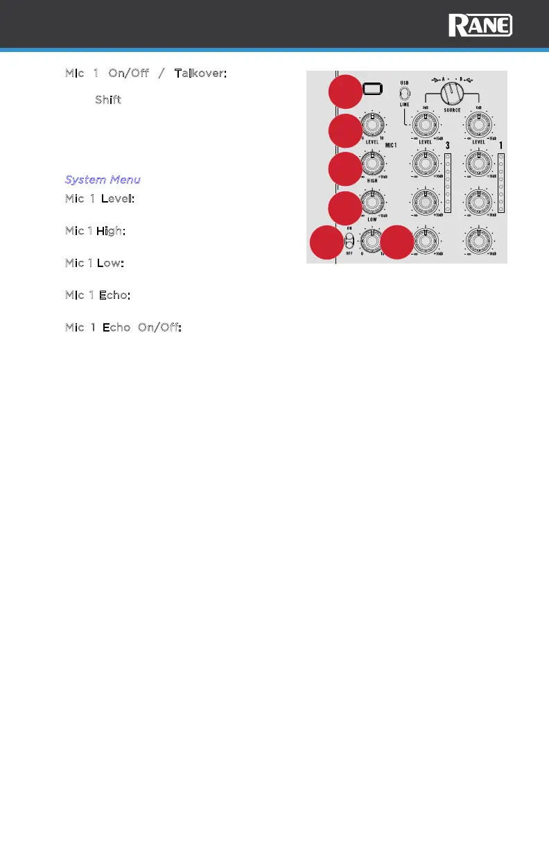 button to turn Mic 1 on and o. Press and