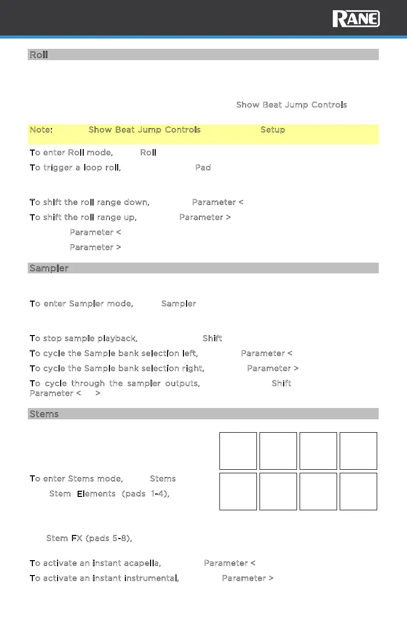 tem FX (pads 5-8), the pad LED will be unlit when Stem FX is o. The LED will
