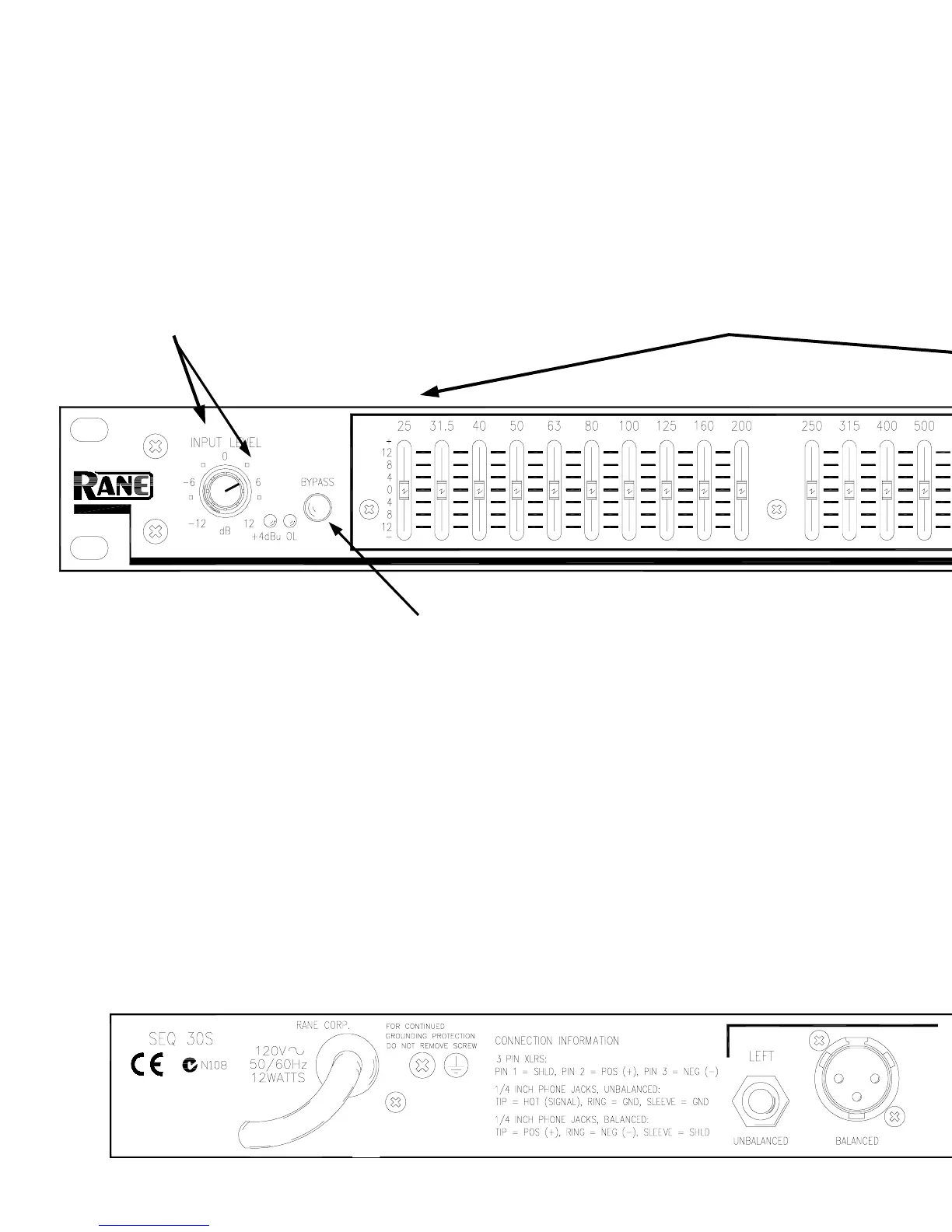 BYPASS switch below). Apply sufficient signal to the input to occasionally light