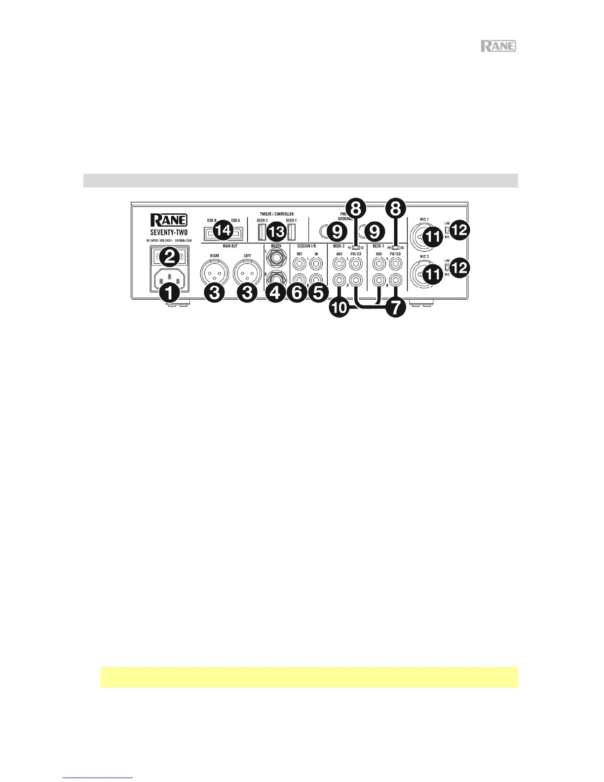 2. Netzschalter: Verwenden Sie diesen Schalter, um Seventy-Two ein- oder auszuschalten. Schalten Sie