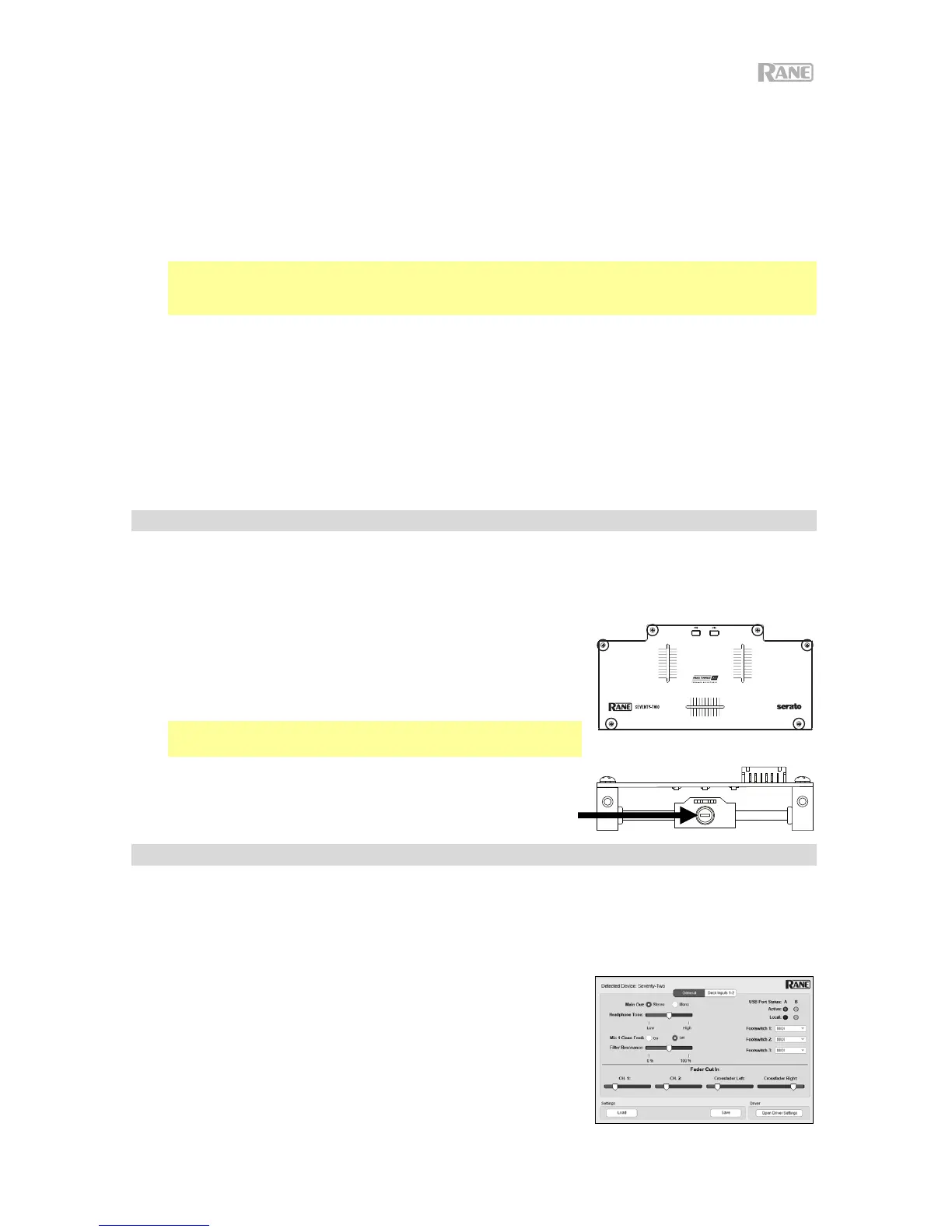 Abschnitt Einstellungen des Rane-Bedienfelds in der