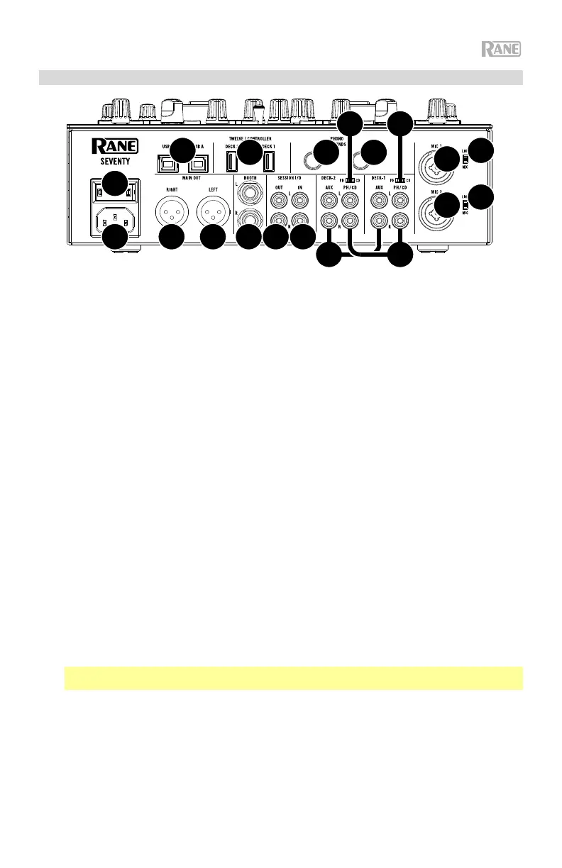 1. Entrée d'alimentation : Alors que la Seventy est hors tension, utilisez le câble d’alimentation fourni