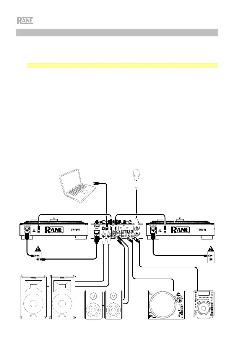4. Using USB cables, connect the USB ports on the Rane Twelve (if using) or other USB MIDI