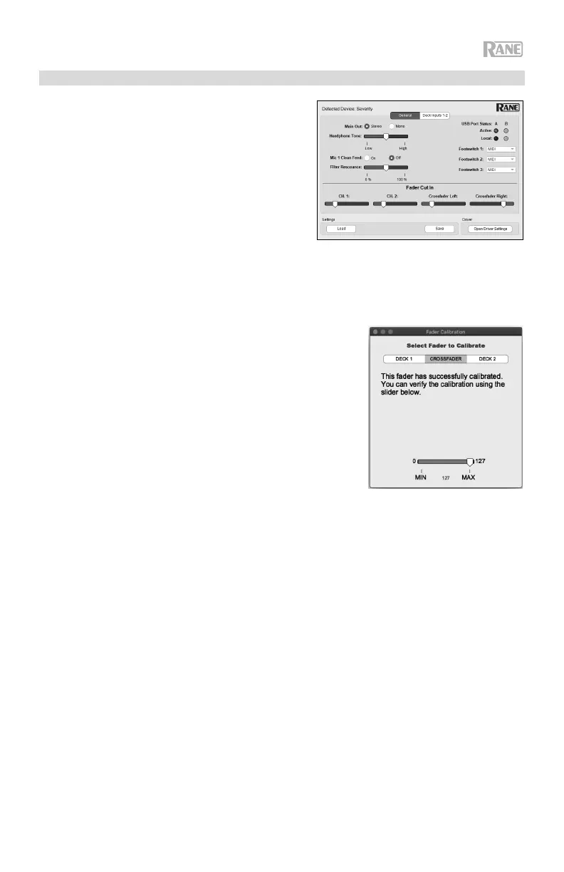 Settings du logiciel Rane Control Panel, sous l’onglet