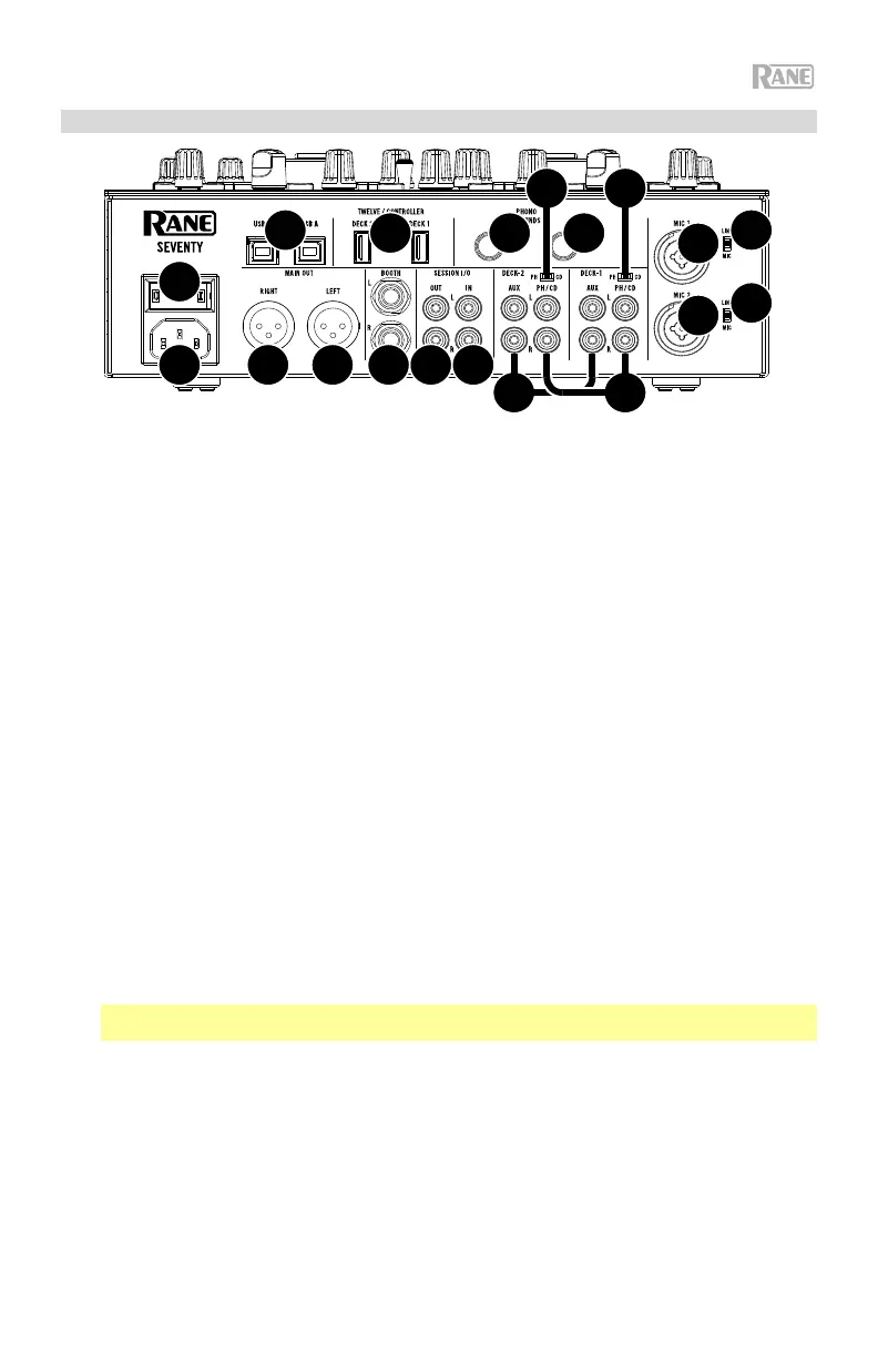 1. Ingresso di alimentazione: quando il Seventy è spento, collegare il cavo di alimentazione in