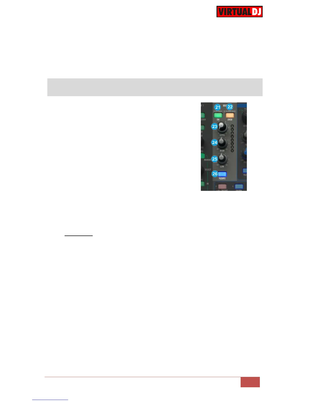 26. MIC FLEXFX. Use this button to route the applied FLEXFX effects on the