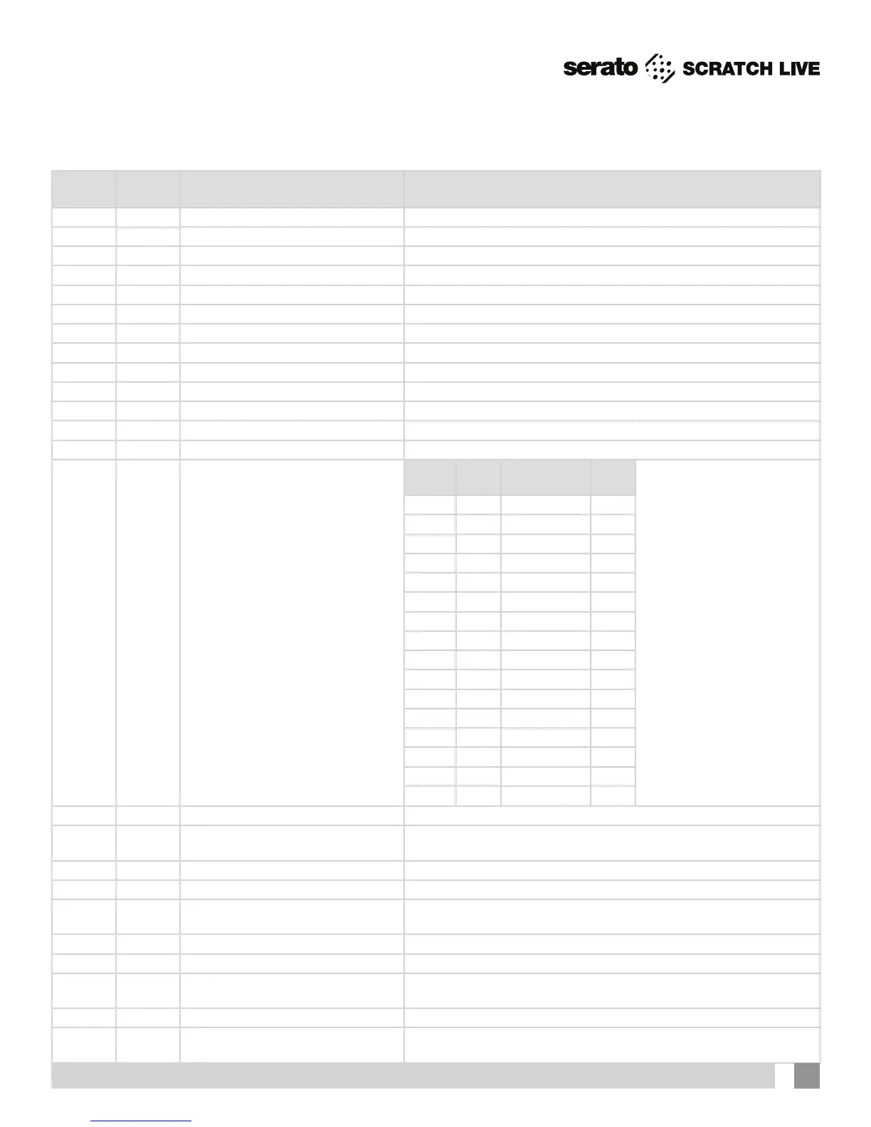 Functions highlighted in GREEN are MIDI-Out Scratch Live or 3rd-party DAW controls.