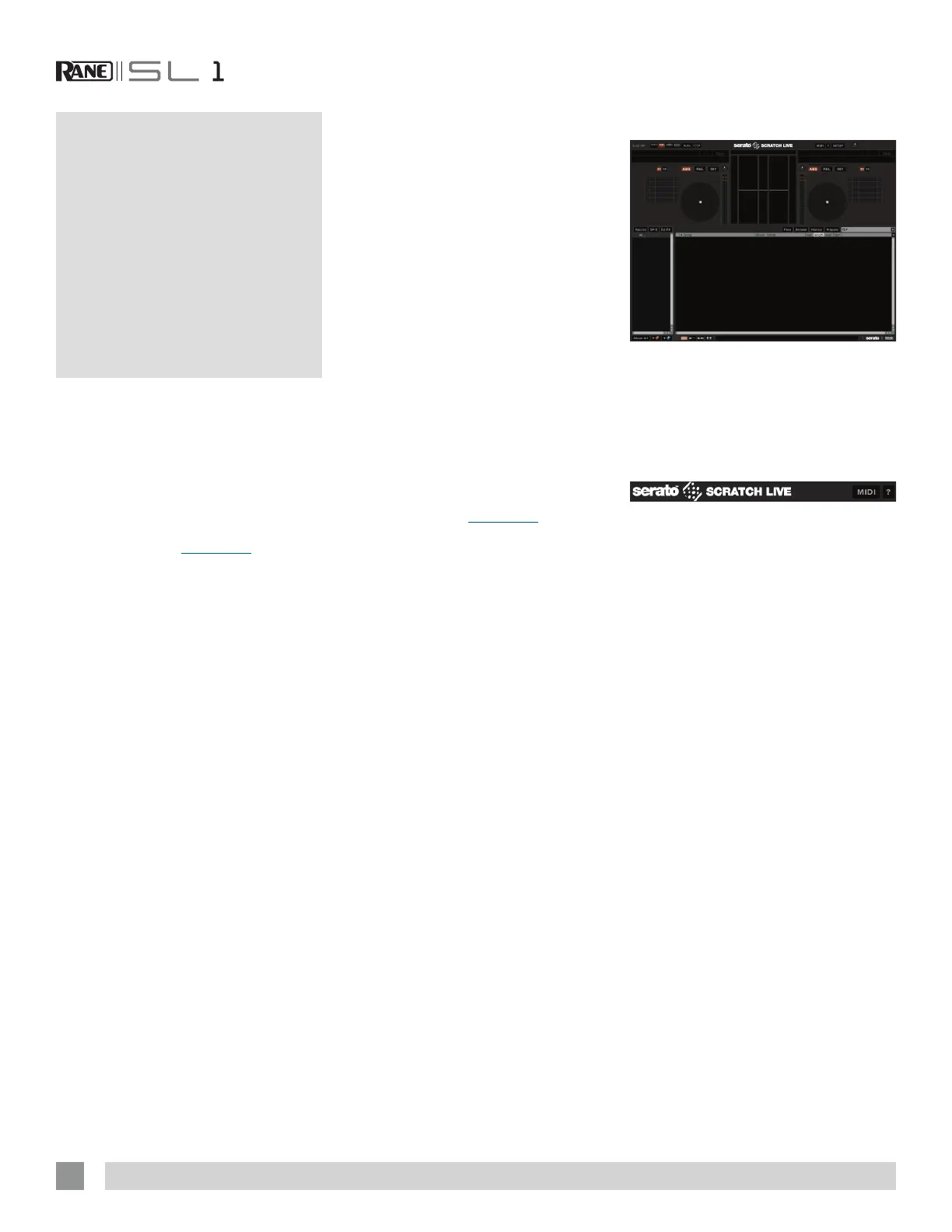 RANE SL1 FOR SERATO SCRATCH LIVE • OPERATOR’S MANUAL 2.5.0