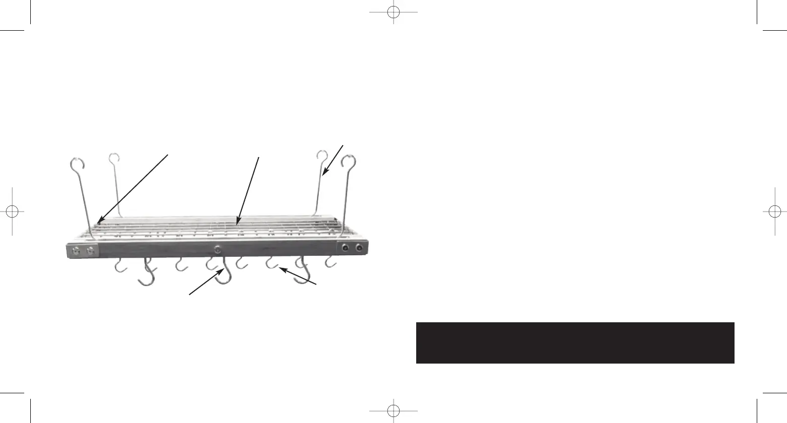 rack. Together, attach the rack hooks provided to the pot rack. Double check to make