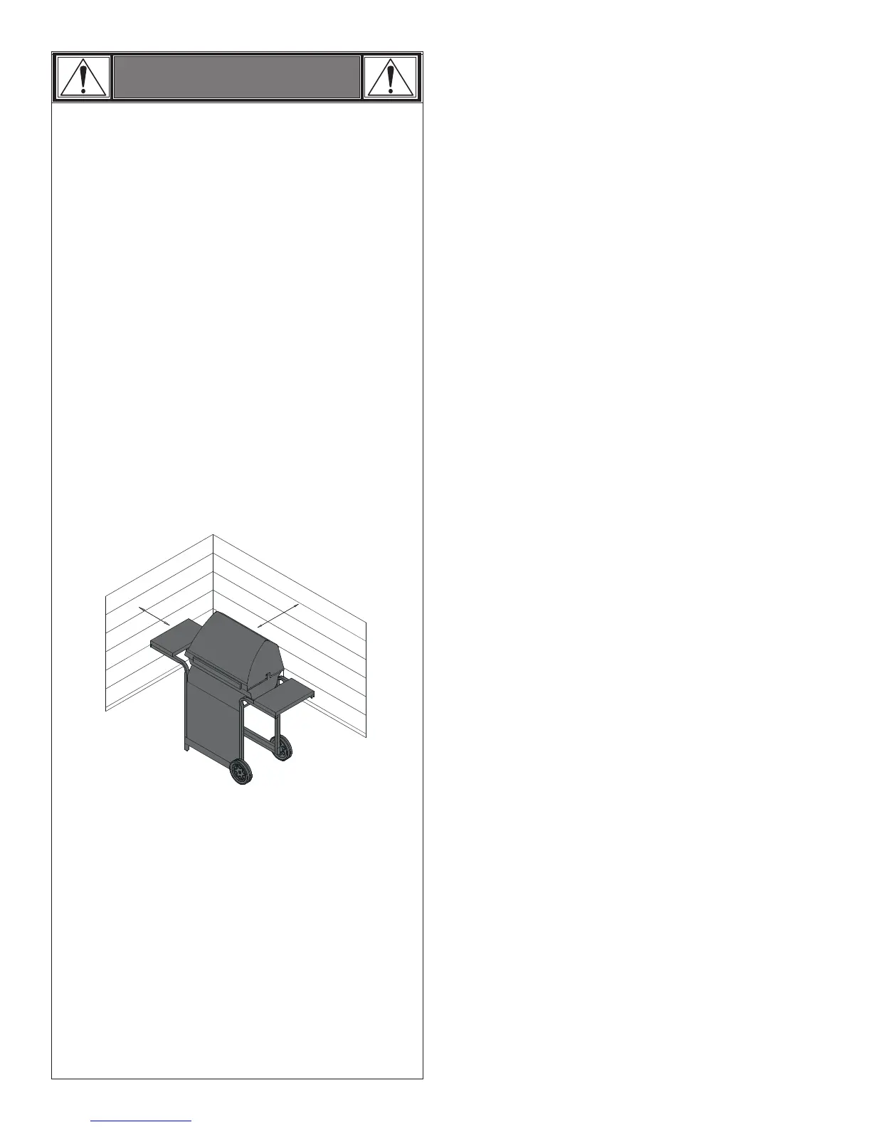 • Do not use charcoal or ceramic briquets in a gas grill.