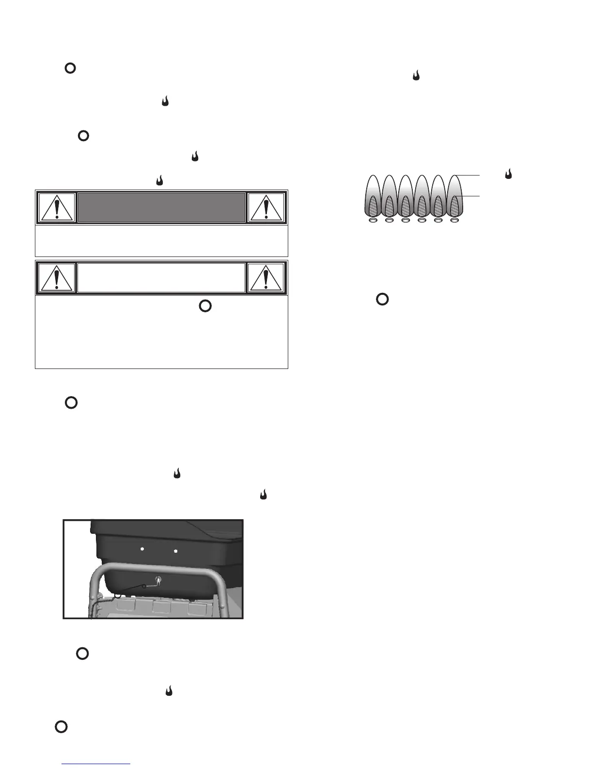 • Turn gas off at LP tank. Press and hold ignitor button. "Click"