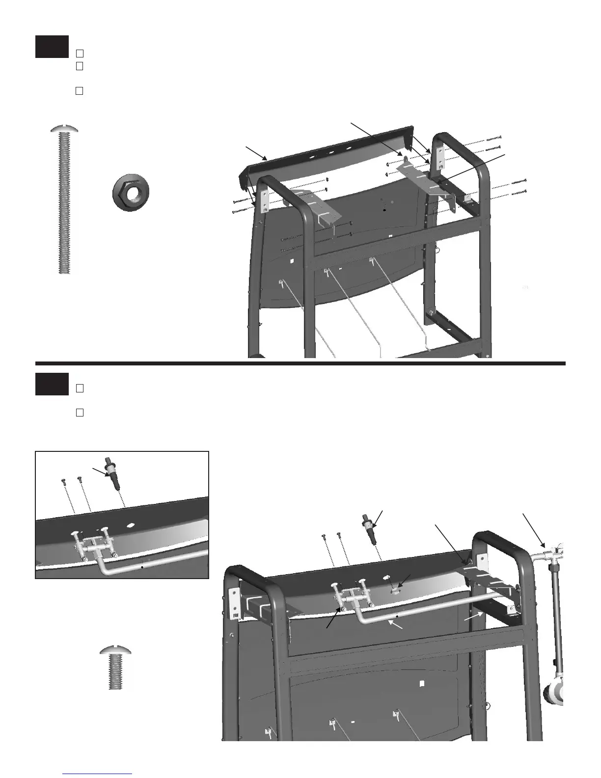 In back, attach upper firebox support with #10-24x2" machine screws and #10-24 flange nuts.