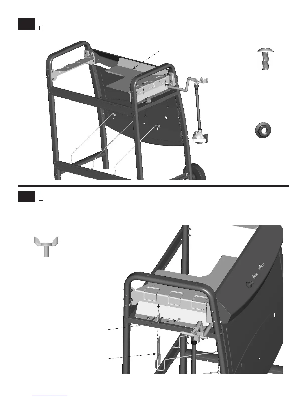 Attach heat shield with #10-24x1/2’’ machine screws and #10-24 flange nuts.