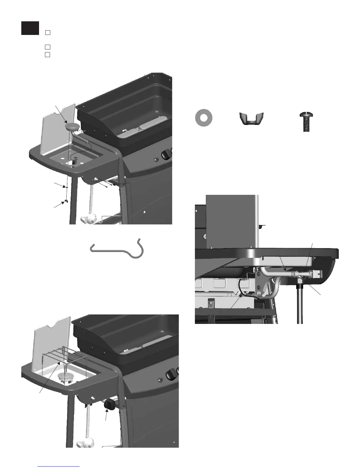 Attach sideburner valve with #8-32x3/8’ machine screws. Place sideburner into shelf (A). Make sure valve is inside