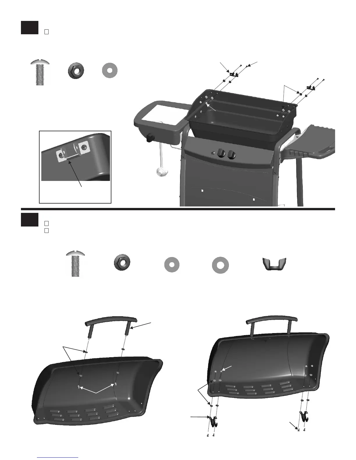 Attach lower hinges to back of firebox using #10-24x1/2" machine screws, 5x15 fiber washers and #10-24 flange nuts.