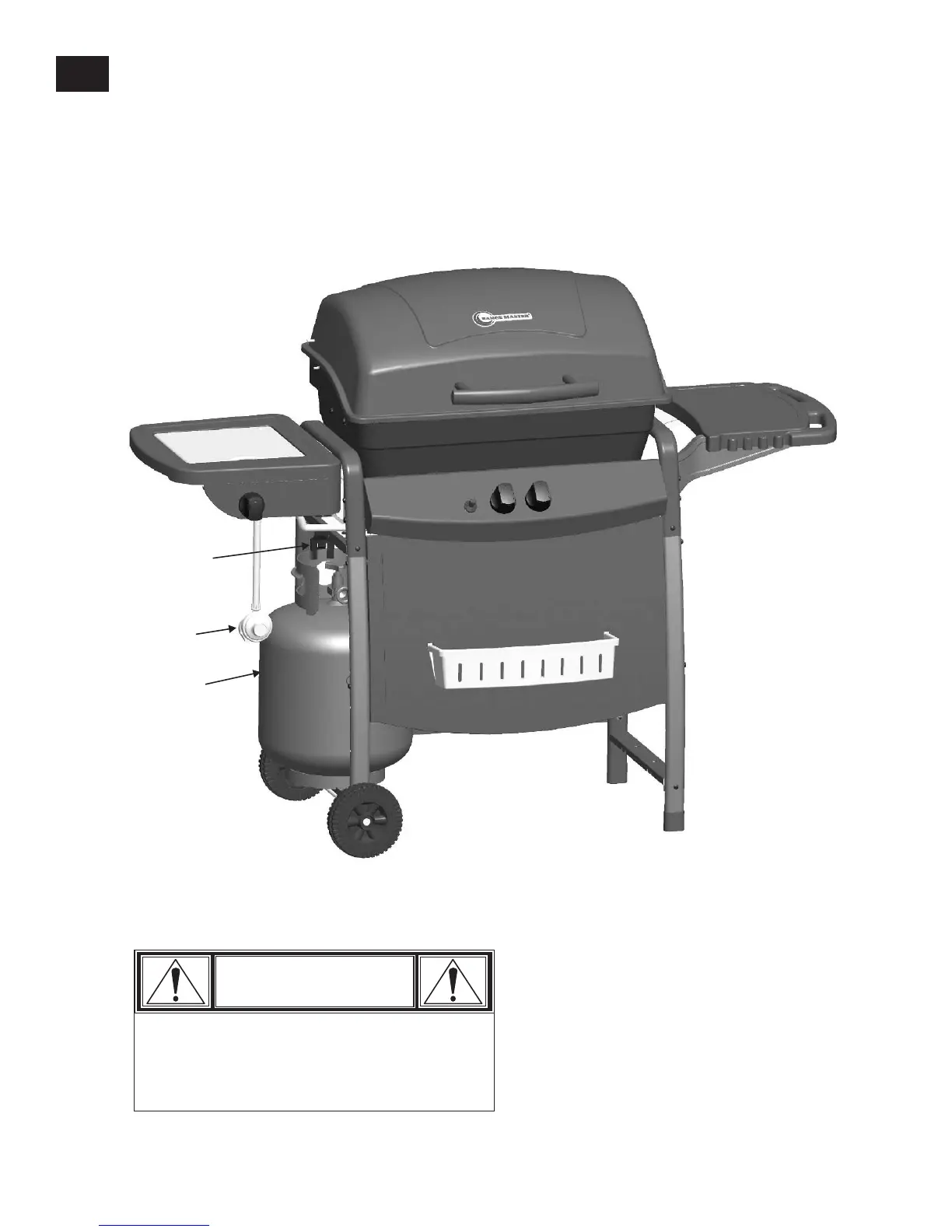 LP CYLINDER IS SOLD SEPARATELY. Fill and leak check the cylinder before attaching to grill and regulator (see Use &