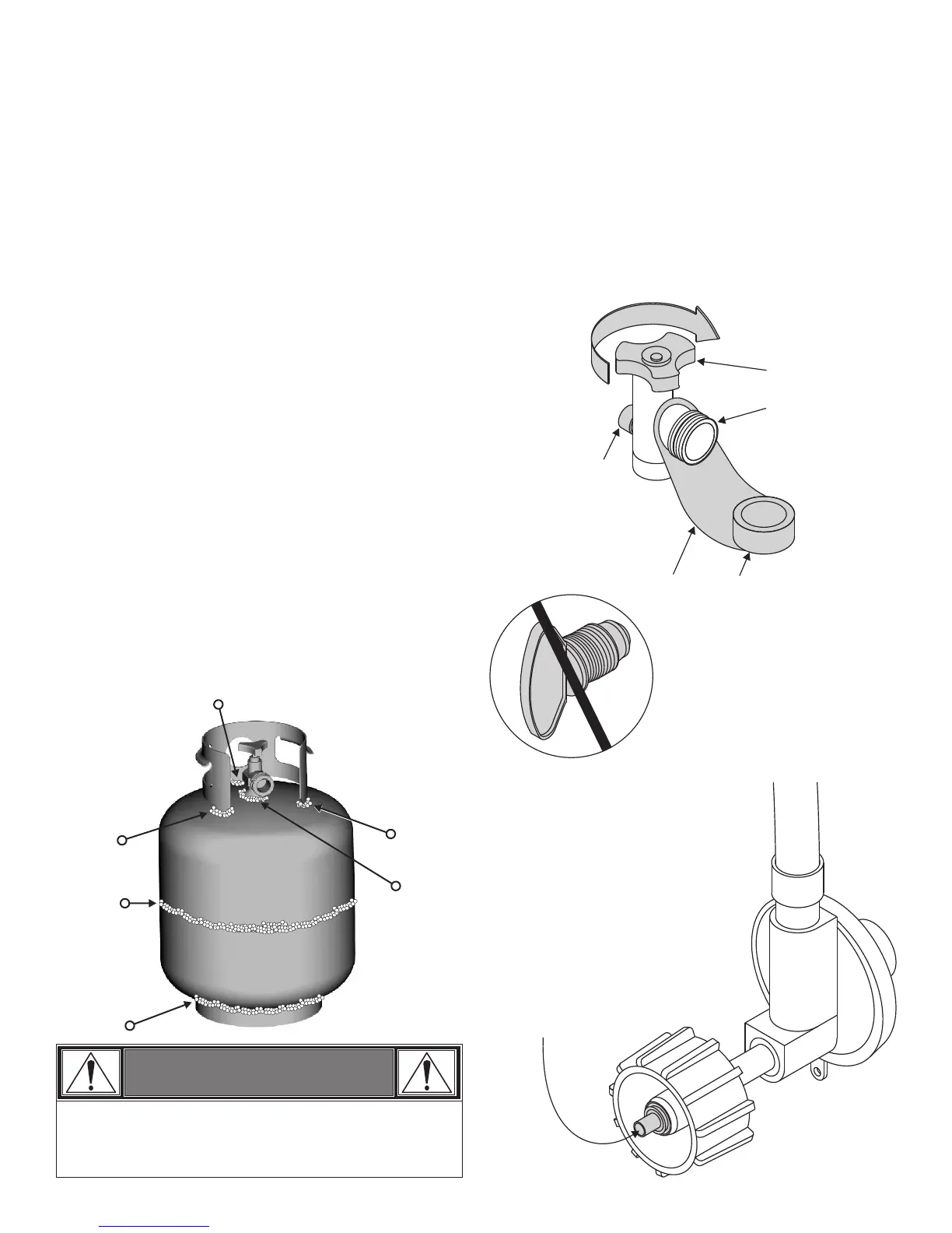 1.LP cylinder must be properly secured onto grill. (Refer to