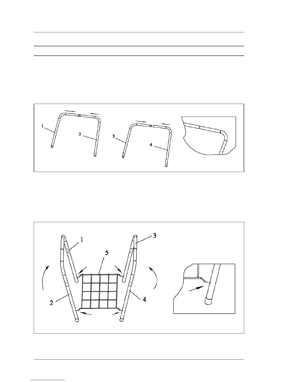 InserttheWireShelf(5)intotheholesontheinsidesoflegs(1)and(2)andlegs(3)and(4).