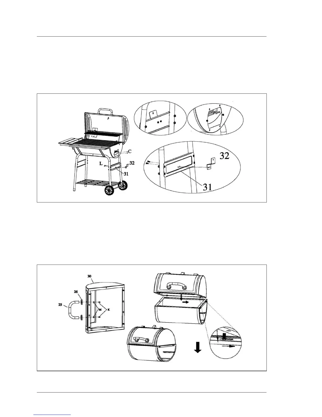 InstalltheFireboxHandle(25)andFireboxHandleSpacers(26)totheFireboxLid(30)with