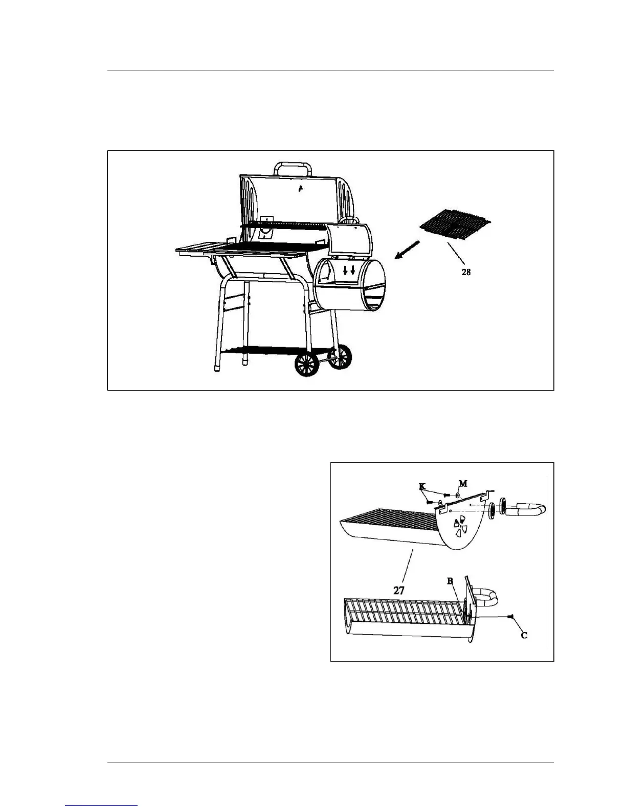 Colocarlarejilladecoccióndelfogón(28)sobrelosbordesdesosténdelcuerpodelfogón.