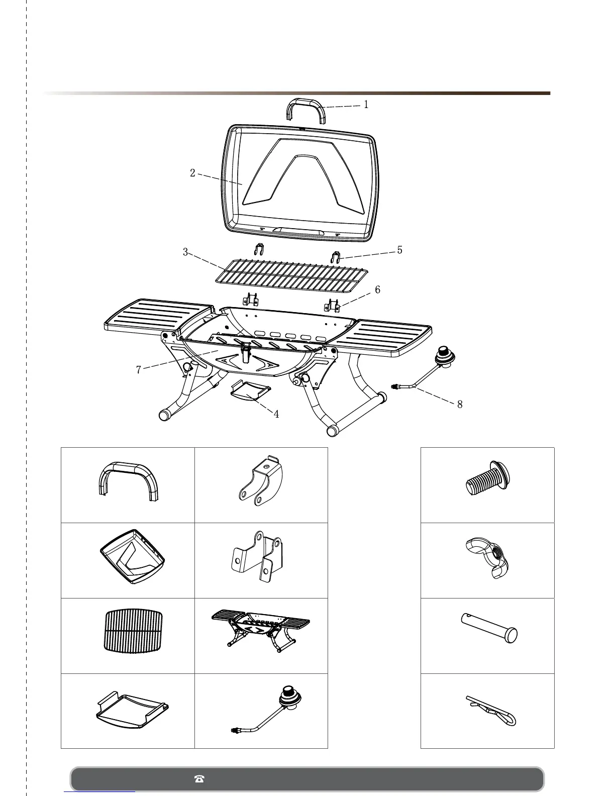 Range Master ER-8102P-3 - Grill Components and Assembly Steps; Parts Identification and Hardware
