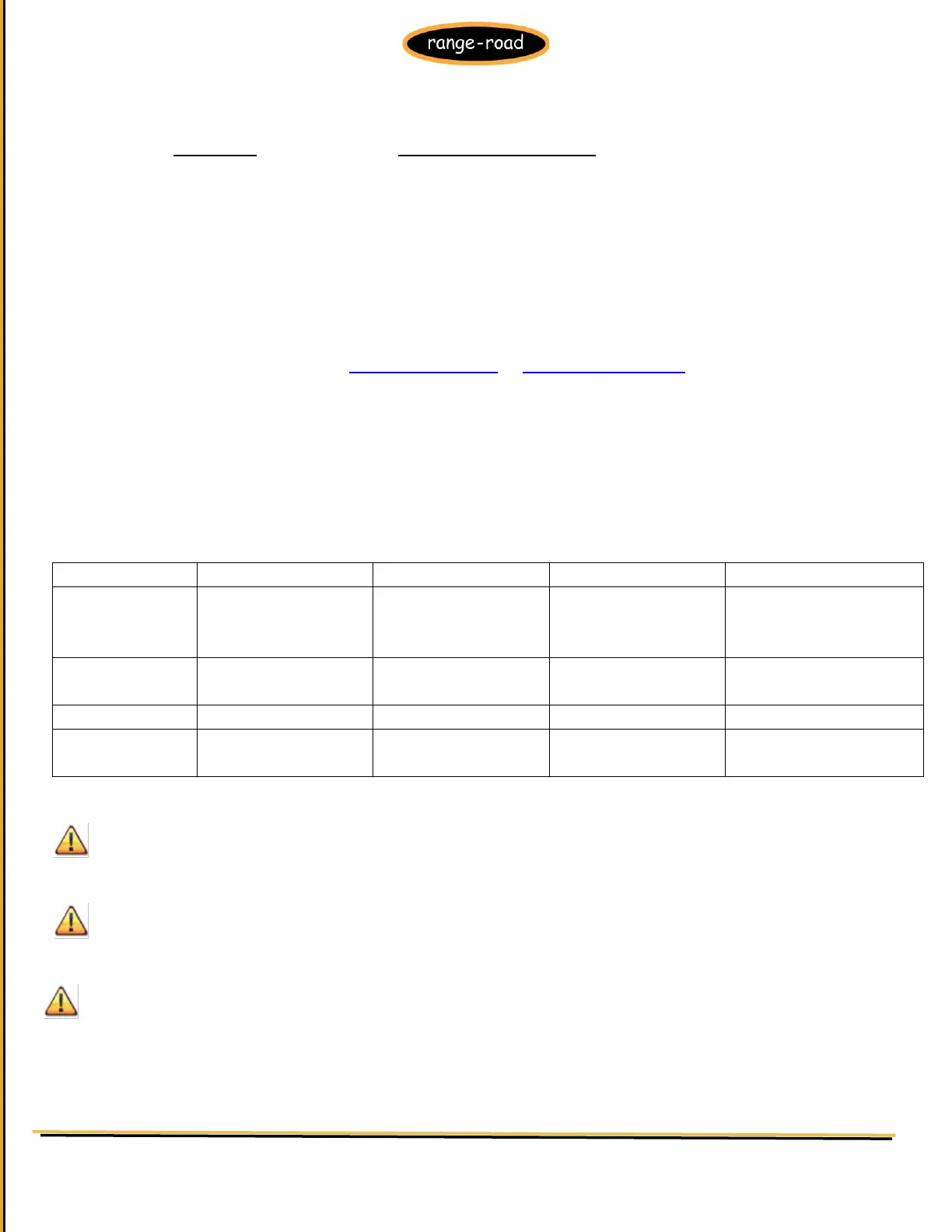 For technical questions please visit www.range-road.ca or www.range-road.com.