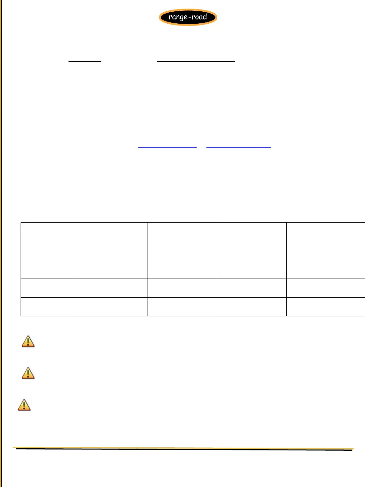 For technical questions please visit www.range-road.ca or www.range-road.com.