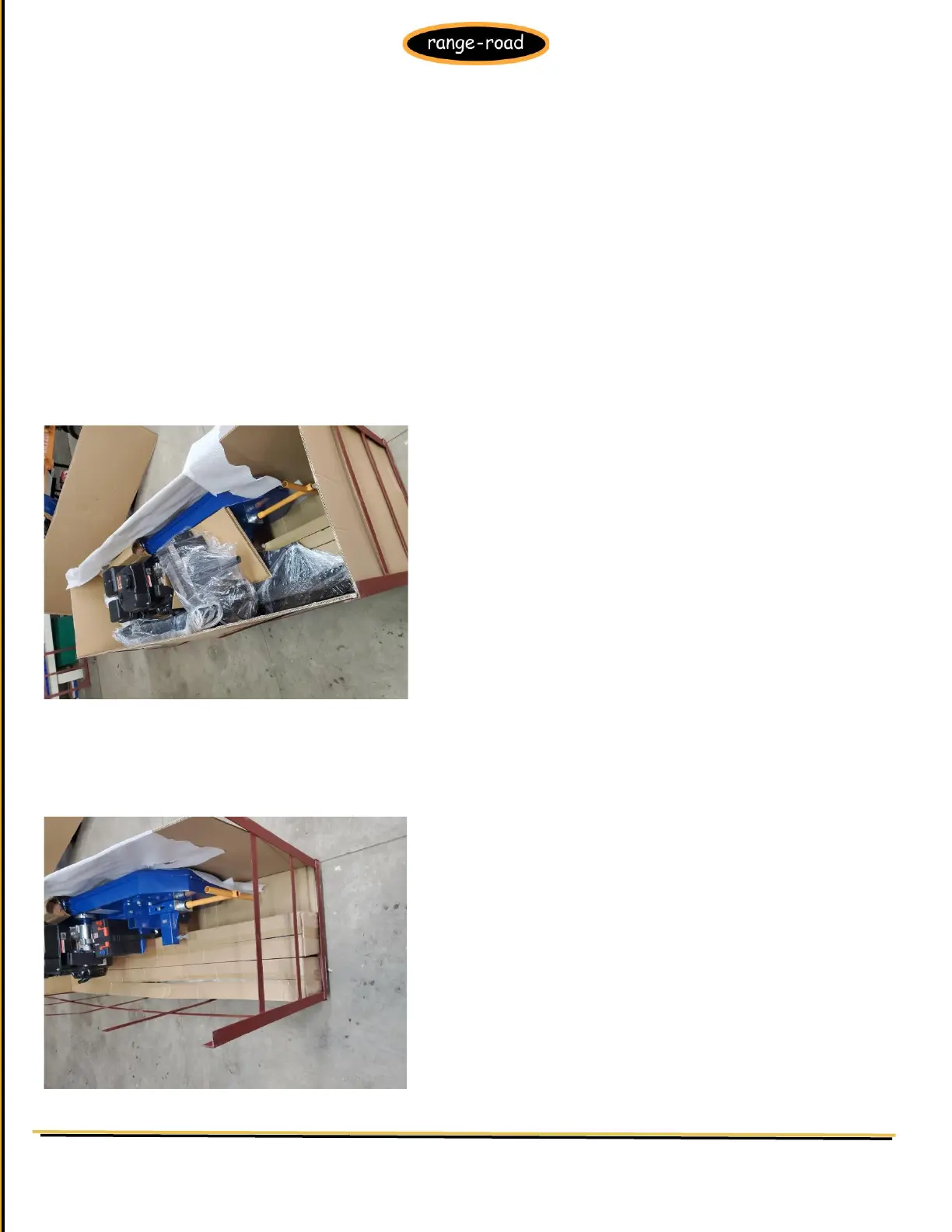 1) Open the package and carefully remove the Individual parts from the crate and organize on the floor. Leave