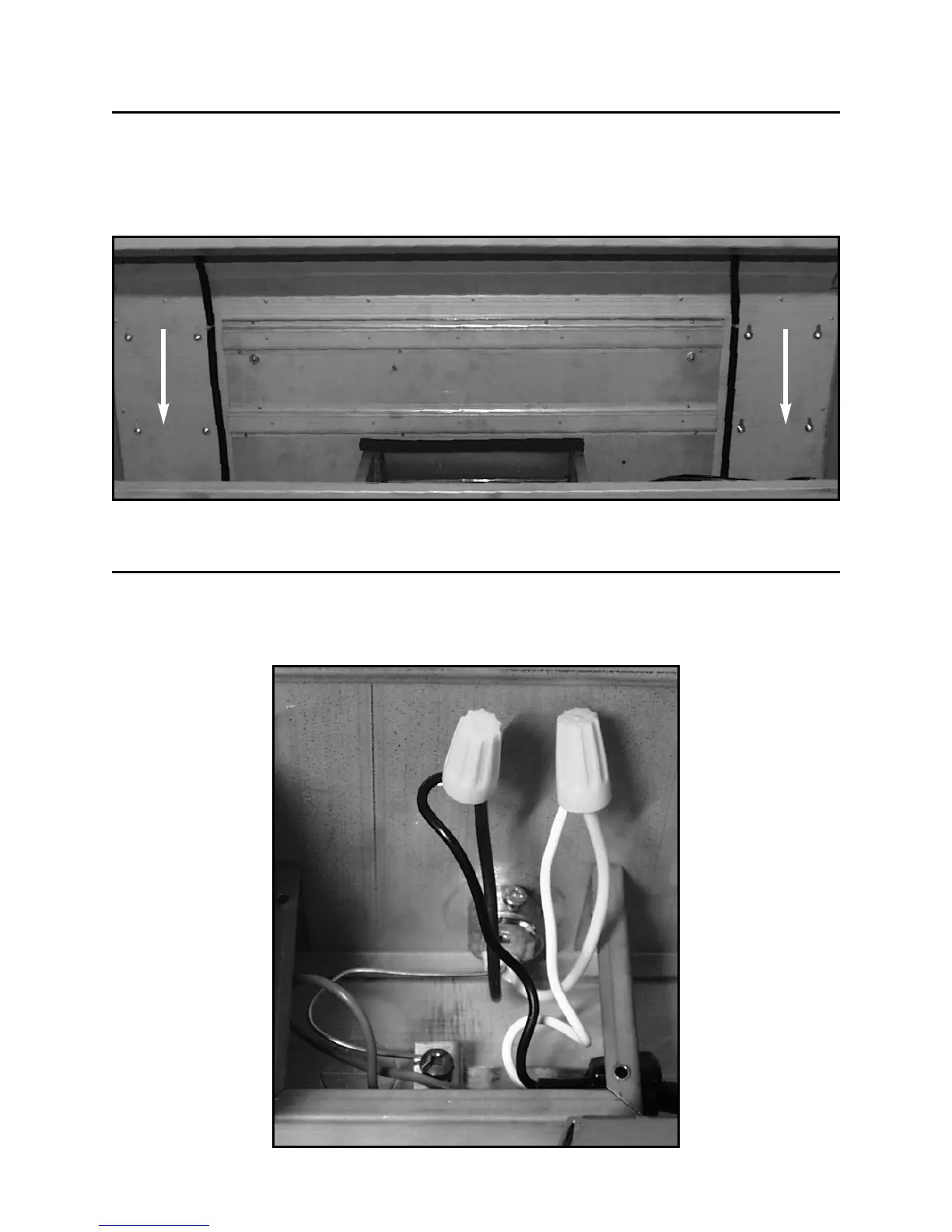 (4 screws for 30” hood). Remove wiring cover, place the wire clamp, insert the cable in the hood and tighten the