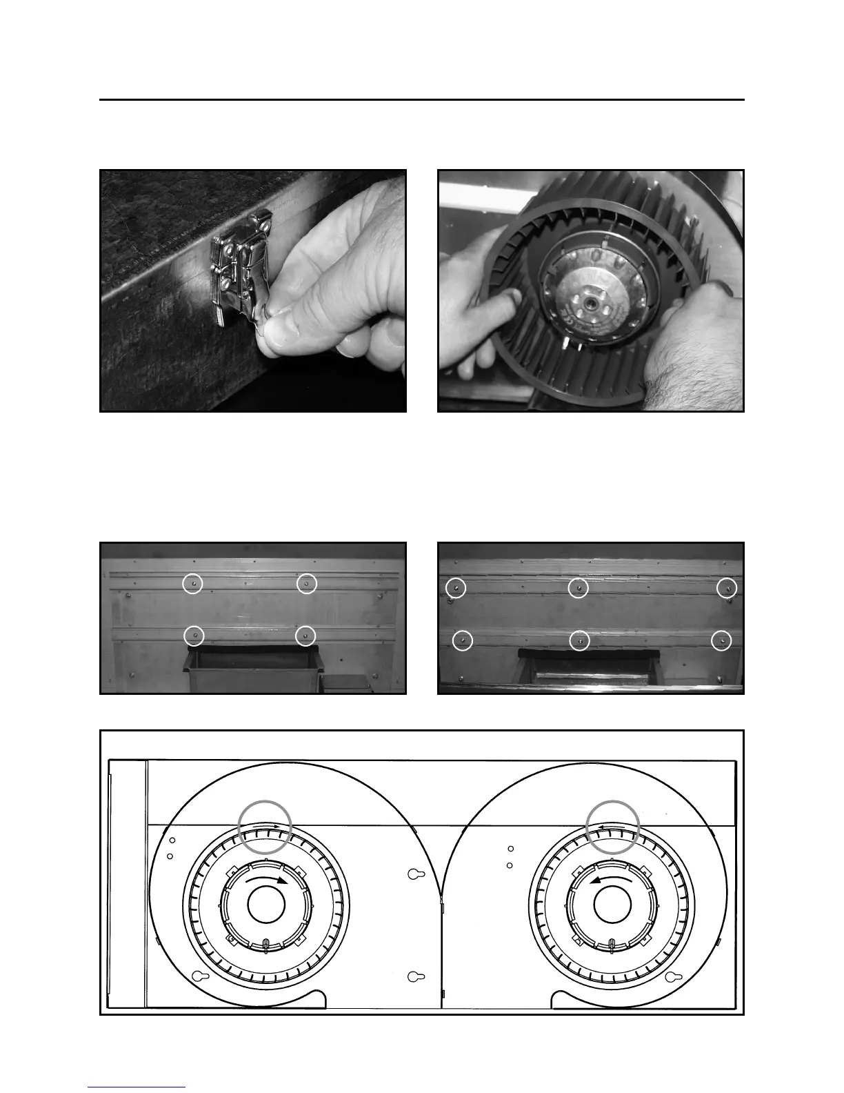 Install screws into the location as shown in the pictures below (single blower or dual blower). Do not tighten