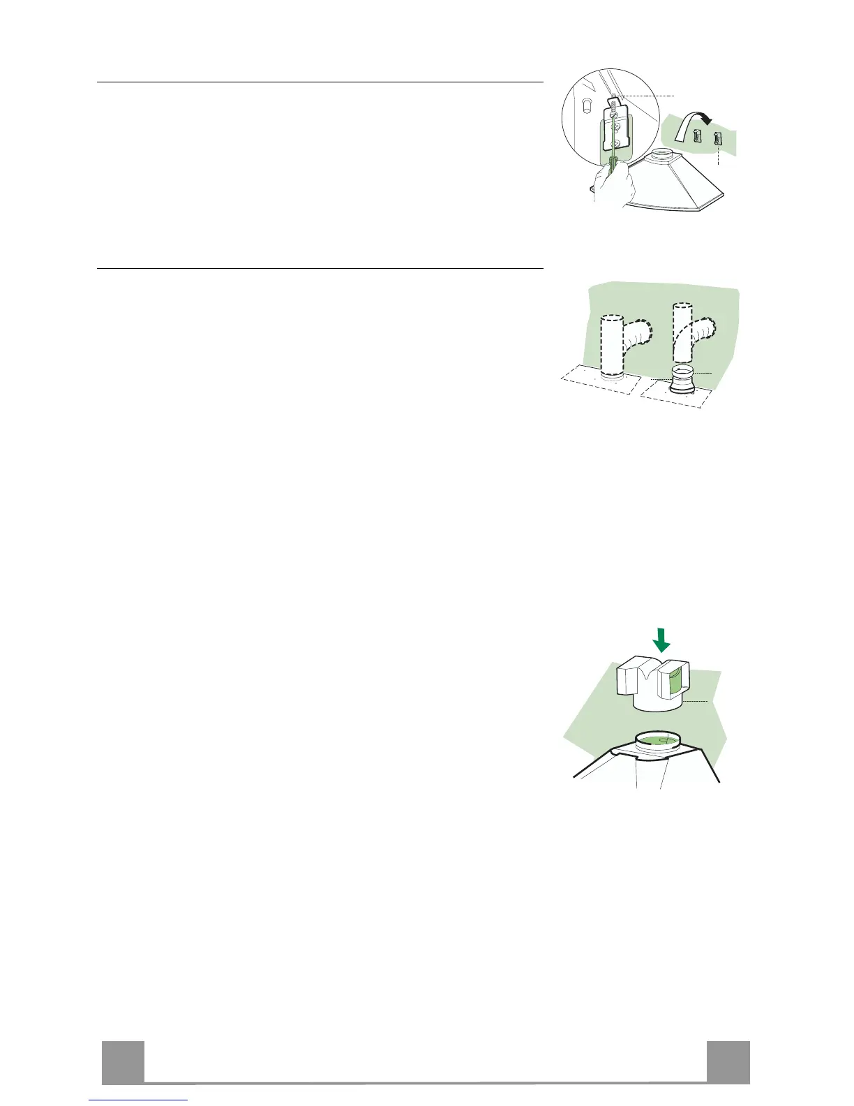 Pour l’installation dans la Version Aspirante, connecter la hotte au tuyau