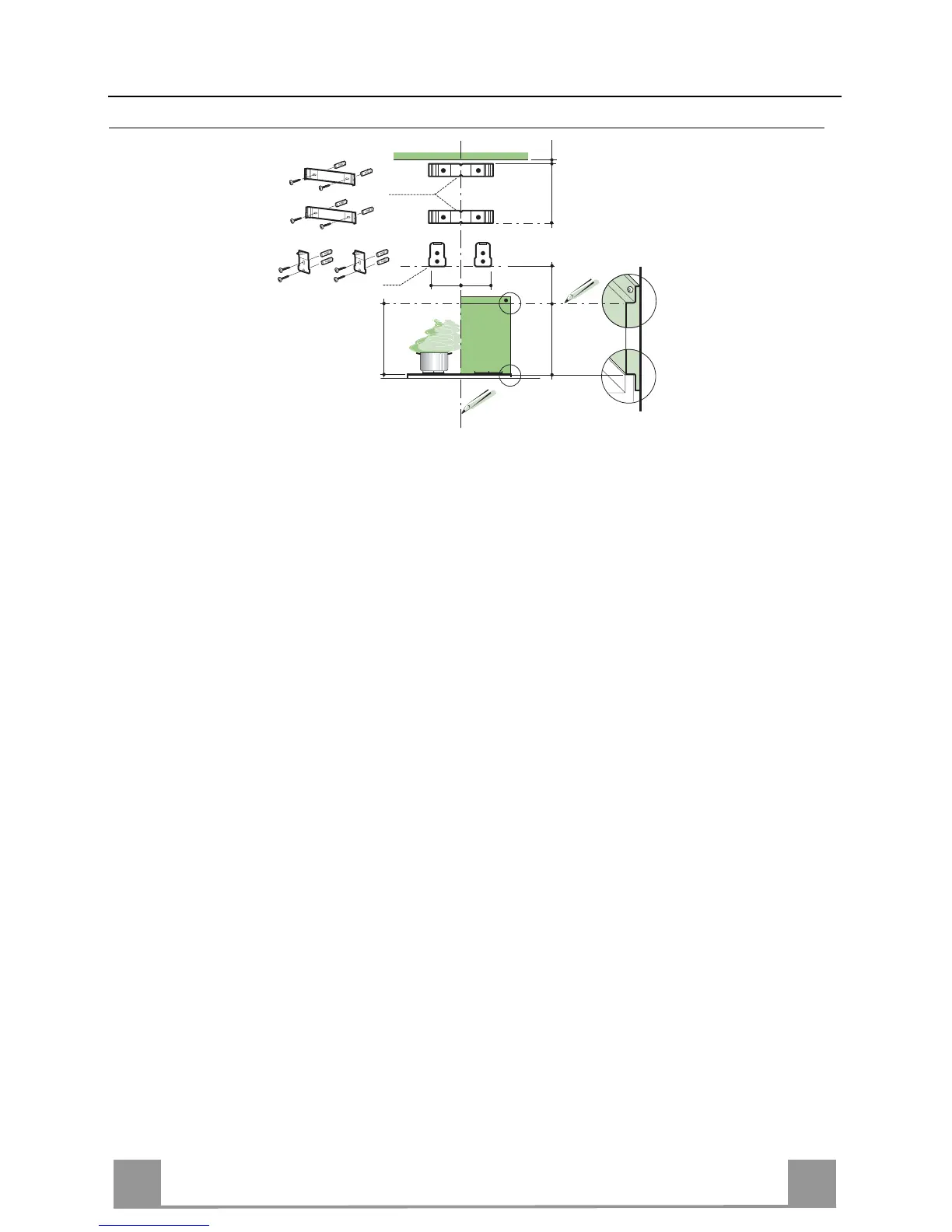 • Die Mitte der Bügellöcher an der Wand markieren.