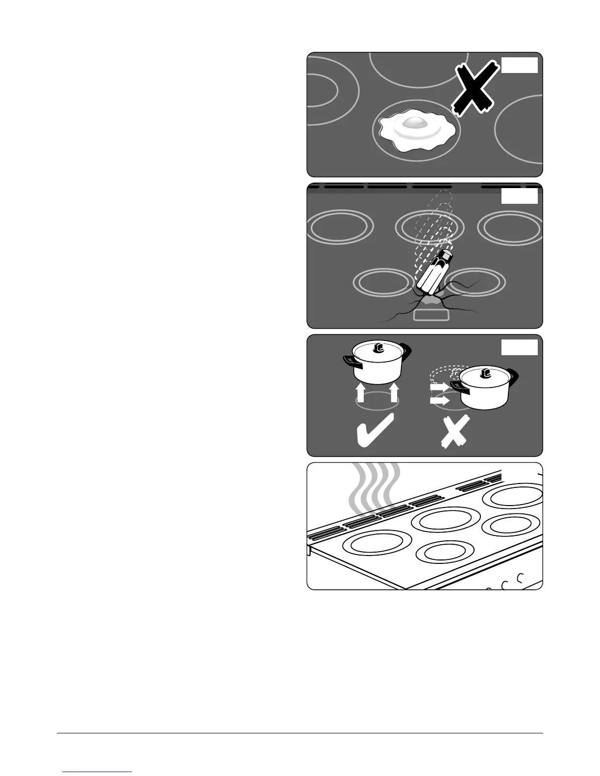 Always LIFT pans o the hob. Sliding pans may cause marks