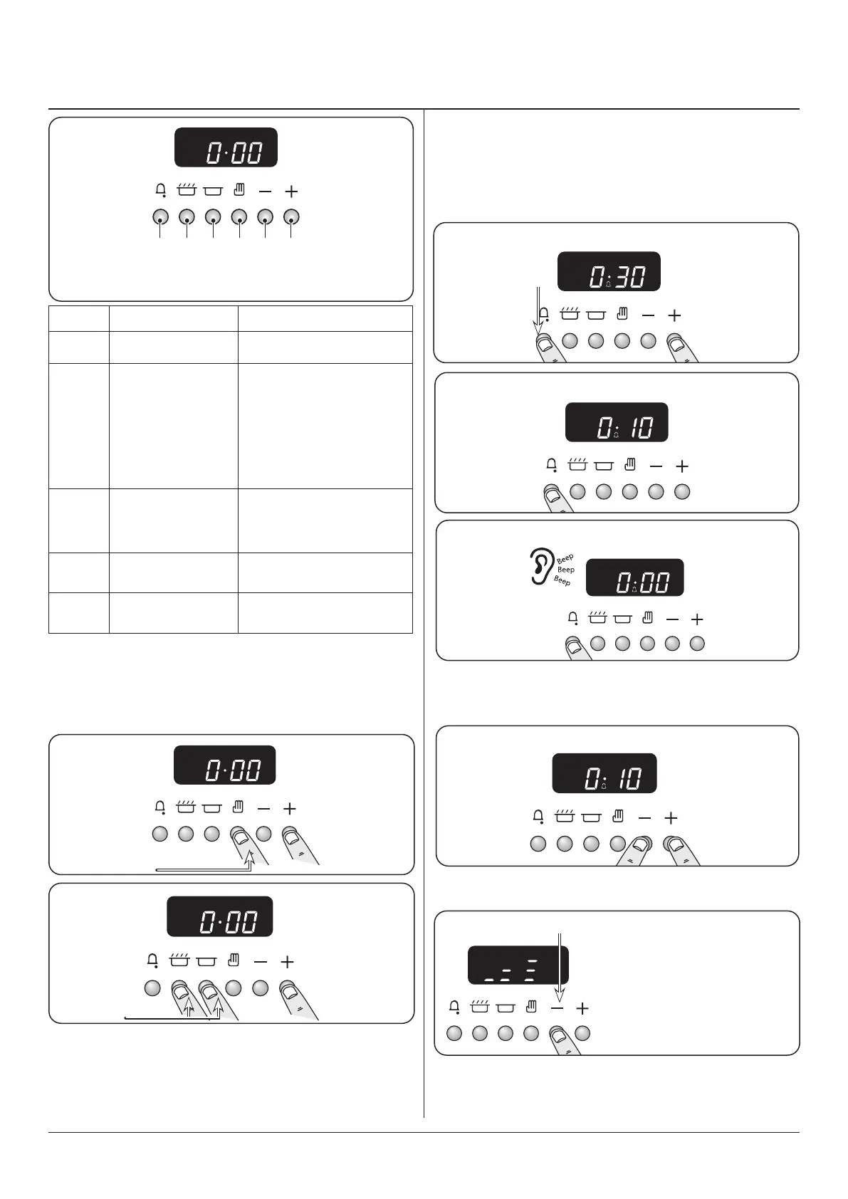 A – Minute minder, B – ‘Cook’ time, C – ‘Stop’ time, D – Manual,