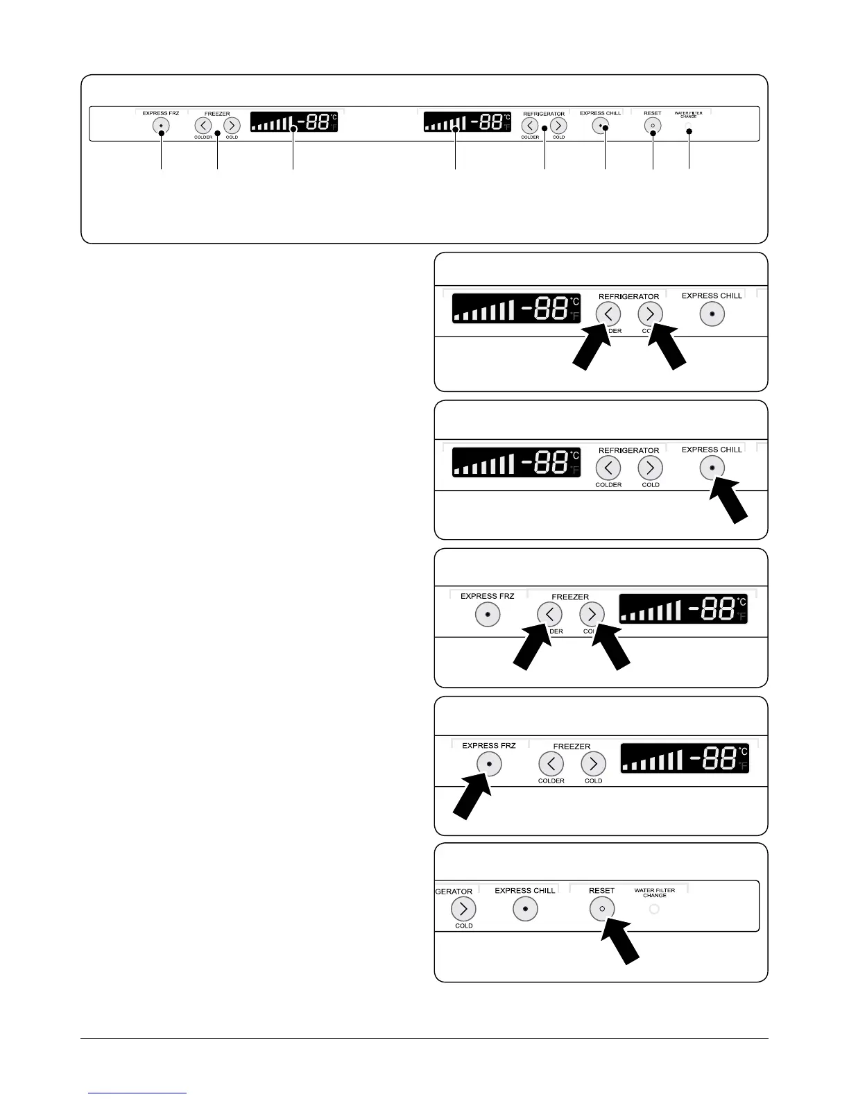 or ‘>’ (Fig.2-14) and the freezer digital display will flicker.