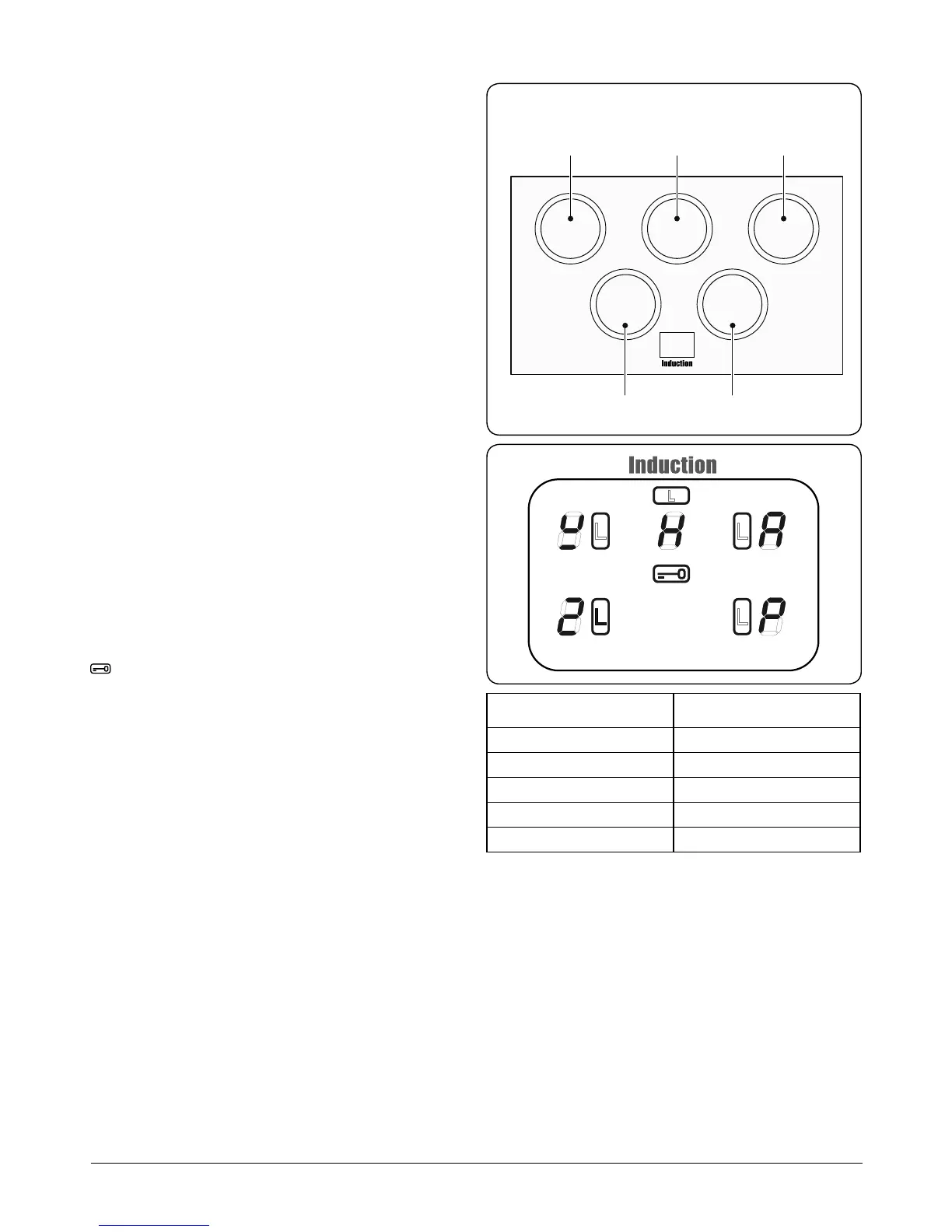 The hob control display (Fig. 2-5) informs you of the